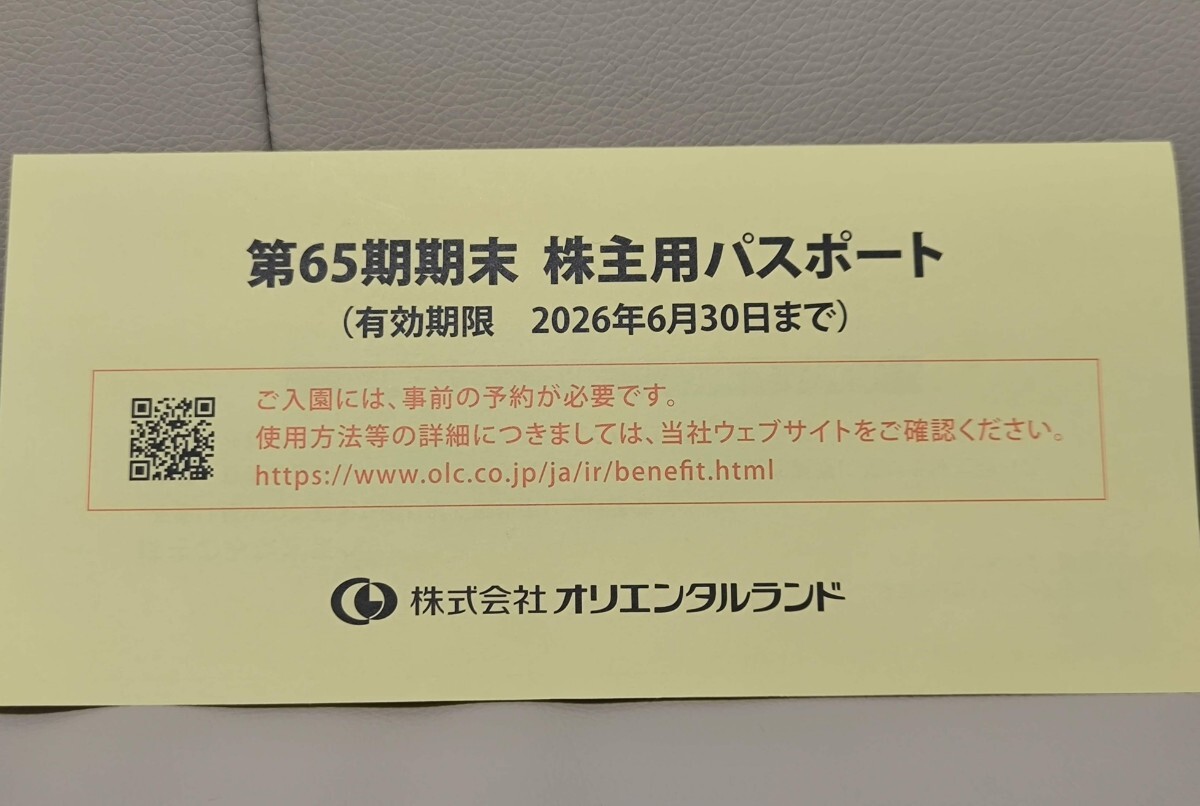 東京ディズニーリゾート 株主優待 オリエンタルランド 1枚