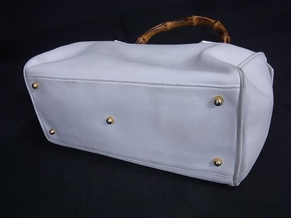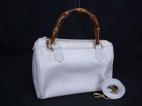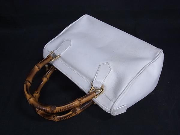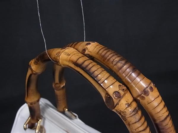 1円 GUCCI オールドグッチ ヴィンテージ 000・122・0294 バンブー レザー 2WAY クロスボディ ハンドバッグ ショルダー ホワイト系 FP7868