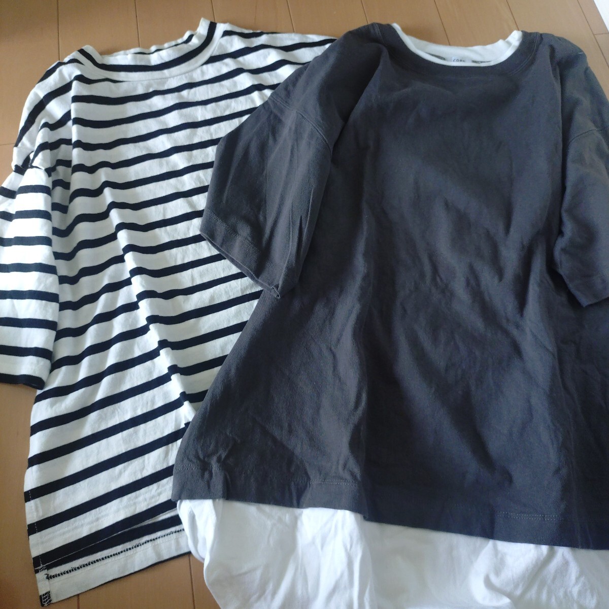 5枚目写真のニコアンドのTシャツは首元少し汚れ目立ちます。