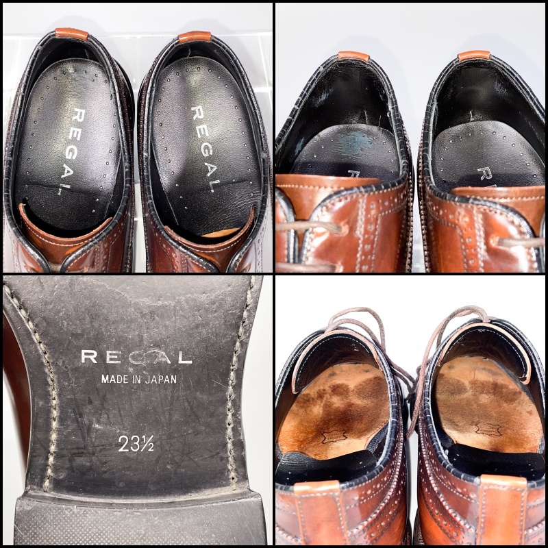 即決 REGAL リーガル ストレートチップ 内羽根式 ブラウン 茶色 メンズ 本革 レザー 革靴 23.5cm ビジネスシューズ ドレスシューズ B2504