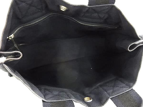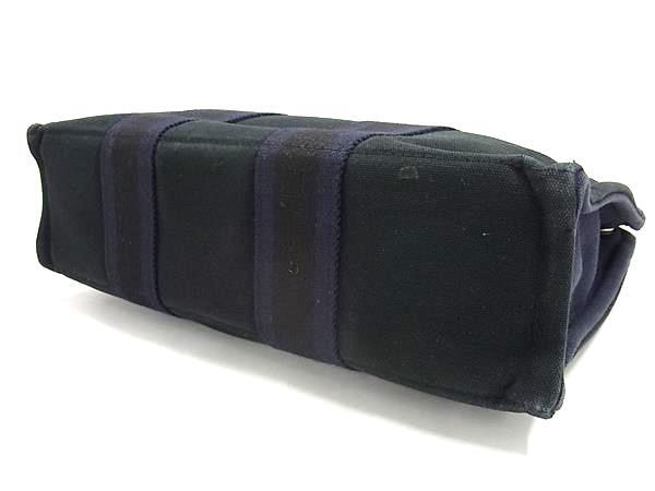 1円 HERMES エルメス フールトゥPM キャンバス シルバー金具 ハンドバッグ トート レディース メンズ ネイビー系×ブラック系 FV3152