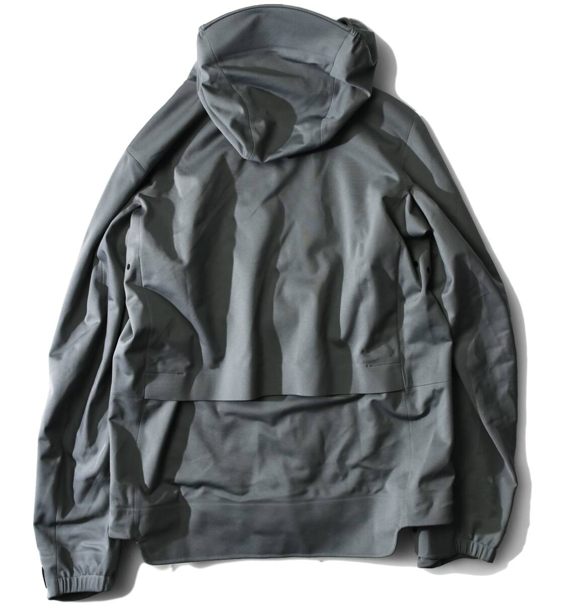 本格アウトドアスペックではありながら、見た目は街着に最適なシャープなシルエット。 ダボつきのないフィット感でありながら、動きやすさを極めたデザインは、モードなミニマル感にも通じるエッセンス。 本格的なクライマーだけでなく都市をアクティブに生活するのも最適。スマートなシルエットなシルエットに裾は 裾は後丈が長めのテール。長めの後裾はかんだときでもインナーが外に出るようなことがありません。 さらに裾には、シルエットの調節ができる「ドローストリング」のあしらい。