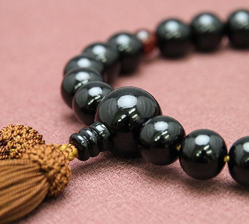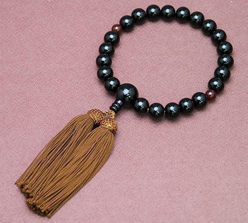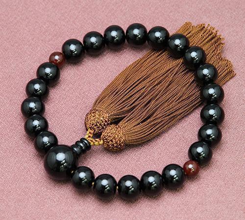 [ゆうパケットOK]黒檀22珠 瑪瑙仕立 茶色房(人絹頭付)【念珠・数珠・男性】