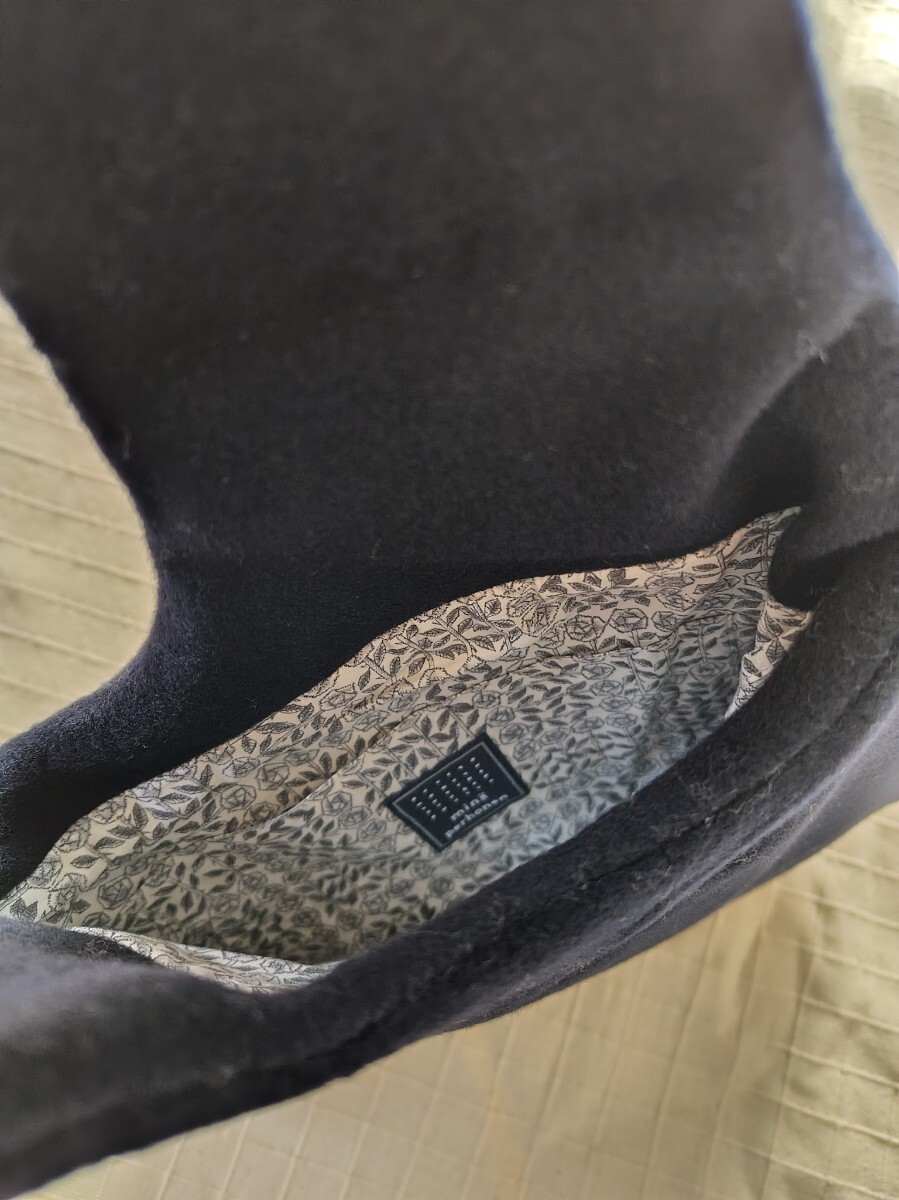 毛、カシミヤ製とレーヨン。色記載は、ネイビー。