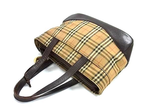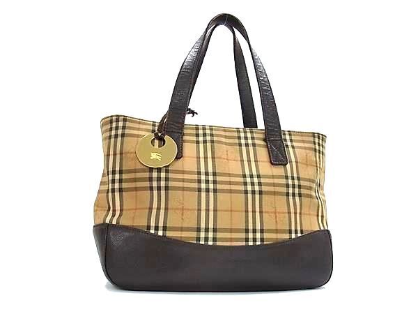 1円 Burberrys バーバリーズ ノバチェック キャンバス×レザー ハンドバッグ トートバッグ レディース メンズ ブラウン系 FT1655