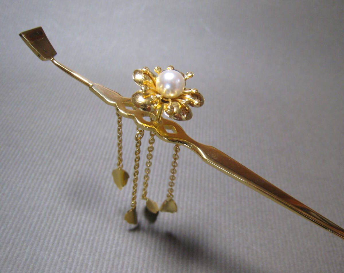 ◆梅花パールの簪 長さ17.3cm×飾り幅1.8cm