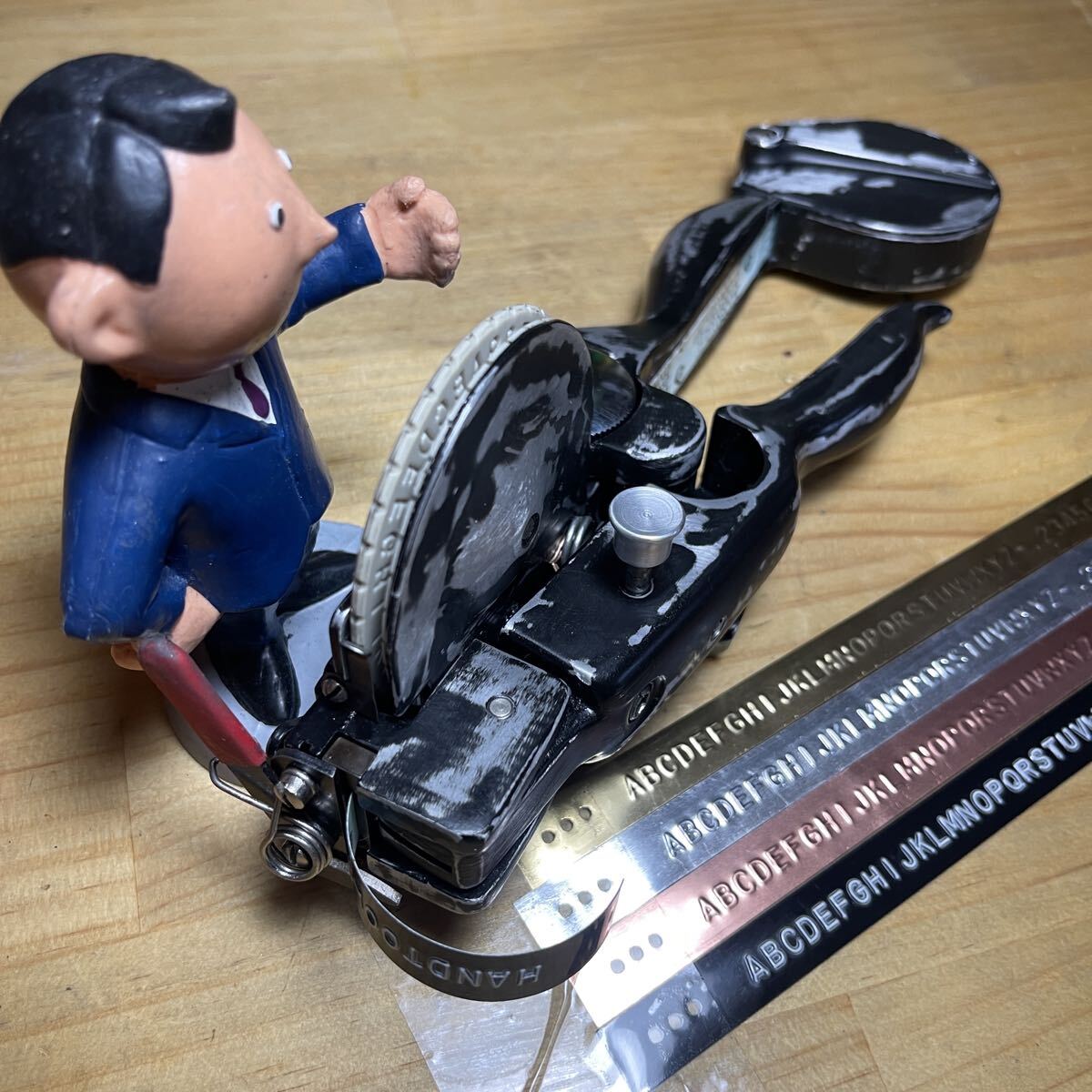 ビンテージDYMOの注意点について ①DYMO MITEシリーズや1011シリーズについては打刻開始時に空打ちを2回から3回実施してください(文字ズレ防止のため) これはDYMOほぼ全部共通になります ②先端のカッターがナイフ状の場合でカッター機能ノブがない機種M-2、M-3はハンマースプリングは1枚になります (欠品ではありません) ③テープ挿入時はテープを真っ直ぐにしてください (テープの幅を指定するスイッチがある場合は事前に位置を確認・セットしてください) ④機種により個体差がありますが、横書の場合は上下にズレてる場合があります (ズレが大きい場合はある程度の調整は可能ですが多少はご容赦願います) ④先端にカミソリ状のカッターが内蔵されている機種(M-6、M-10など)ではテープの曲がりにより刃の手前で詰まる事がありますが、その場合は少しカッターを上げてください ⑤ご購入、ご落札いただいた場合は部品代を除き調整、整備は無料です(往復の送料はご負担願います)⑥オリジナルメタルテープは製造後、間もないのでテープに癖がなく反発力がありますので、本体に格納すると抵抗でテープが前進しない場合があります 予めカットするか格納しないで打刻してください