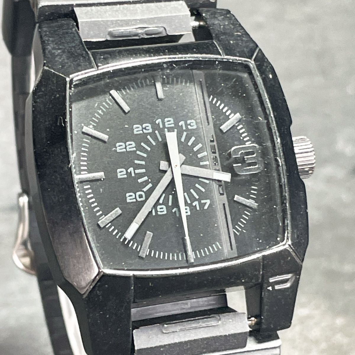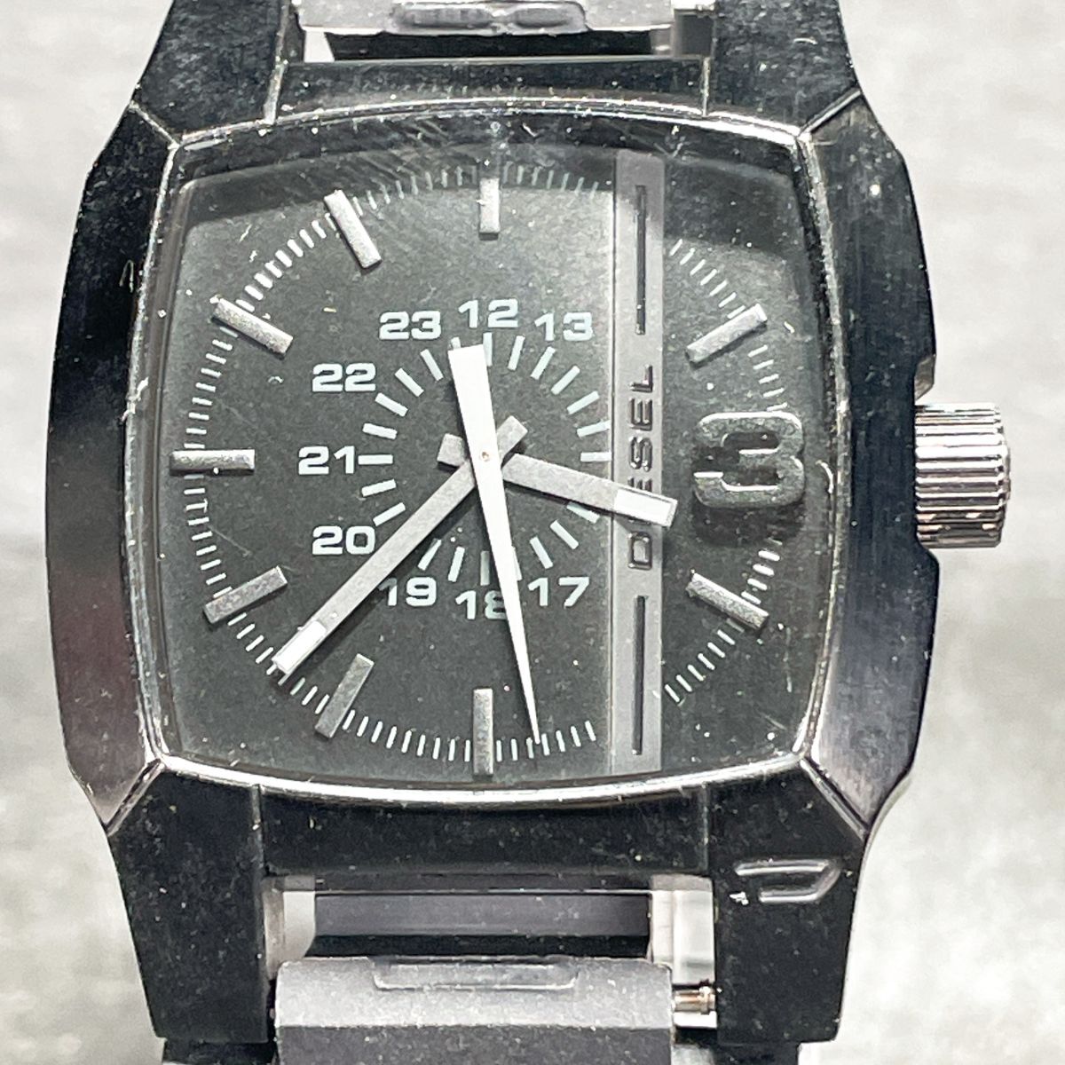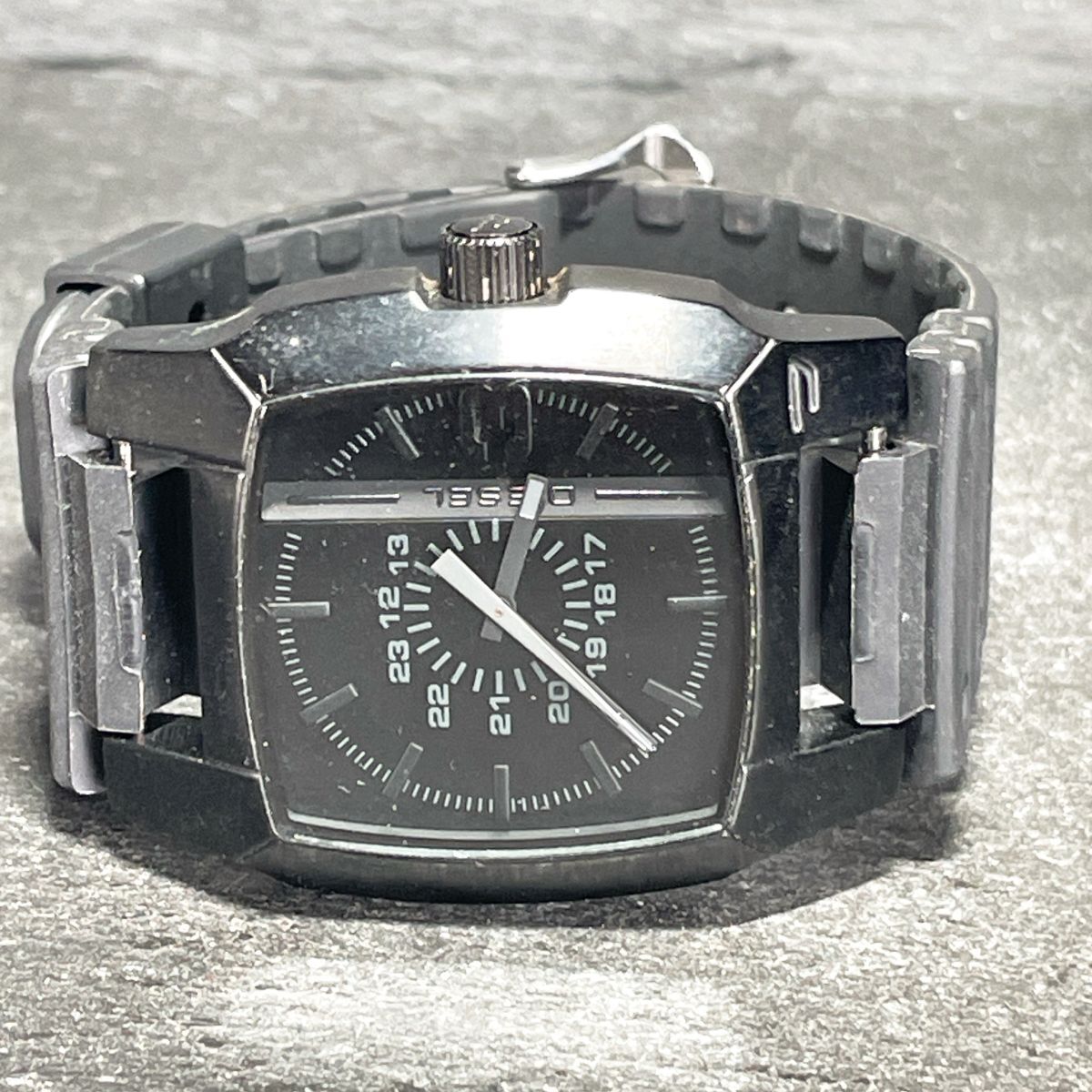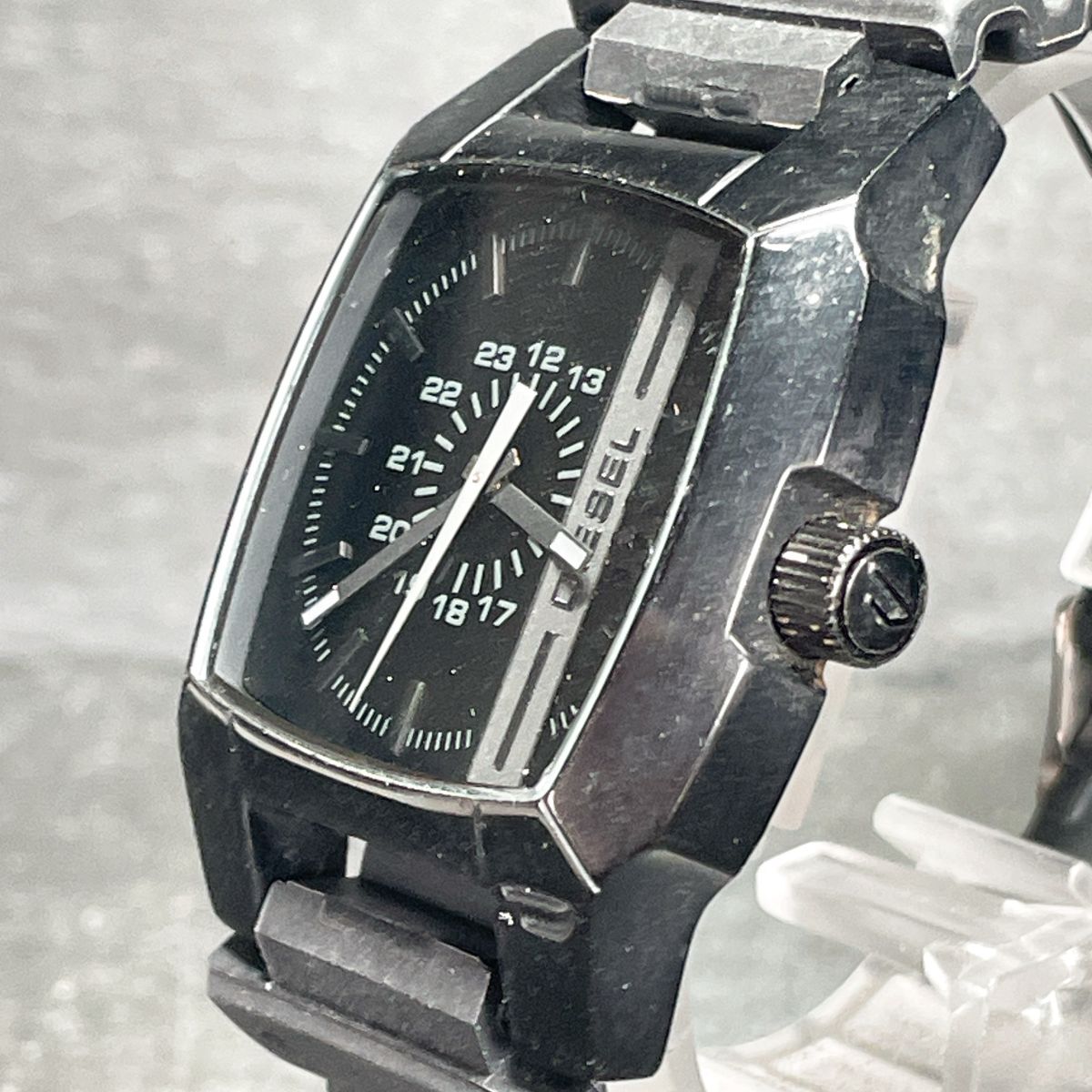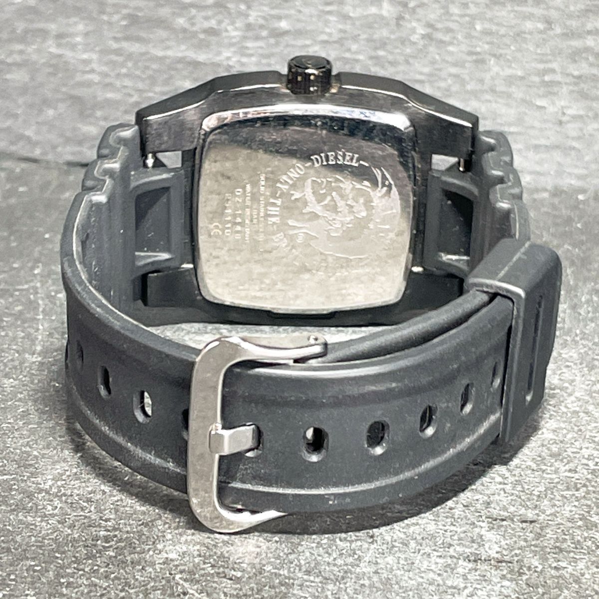 美品 DIESEL ディーゼル DZ1448 腕時計 アナログ クオーツ 3針 ブラック スクエア ラバーバンド ステンレス 新品電池交換済み 動作確認済み