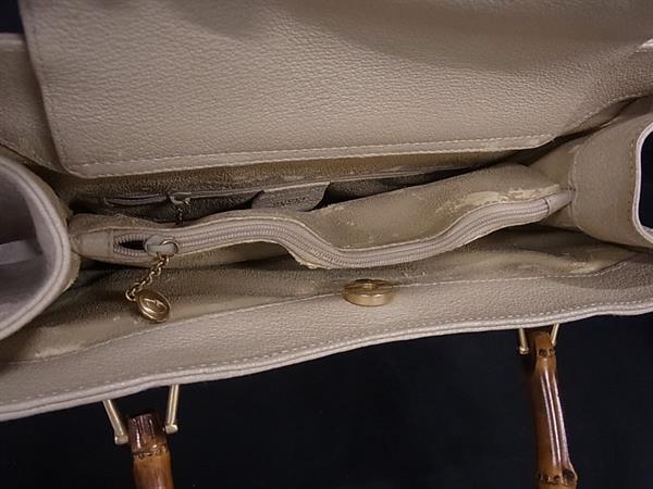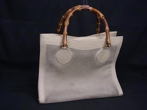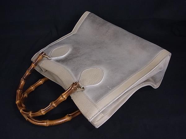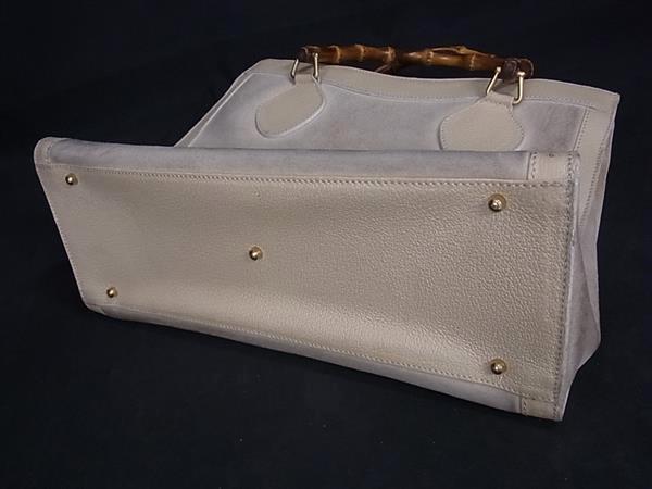 1円 GUCCI グッチ 002 1186 0260 バンブー スエード×レザー ハンドバッグ トートバッグ レディース アイボリー系 GA5363