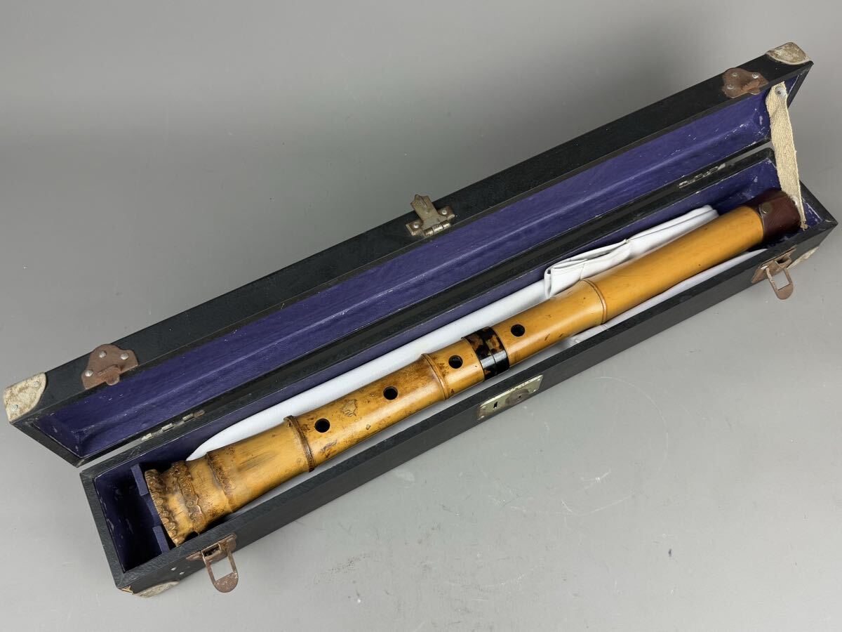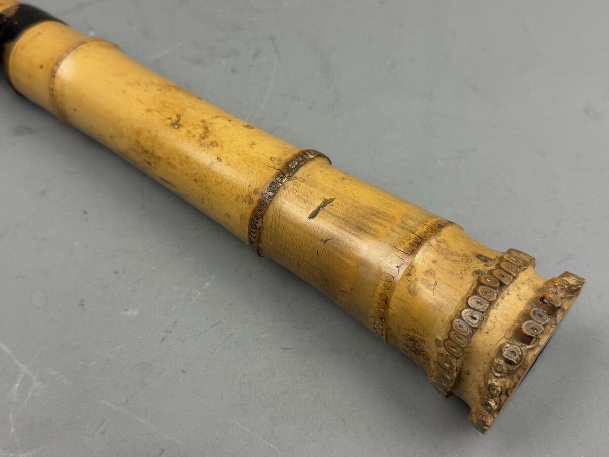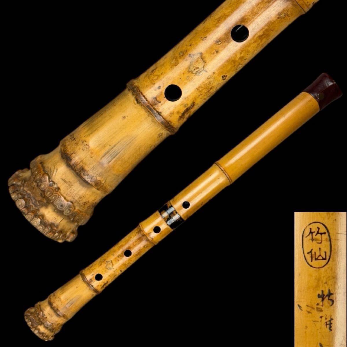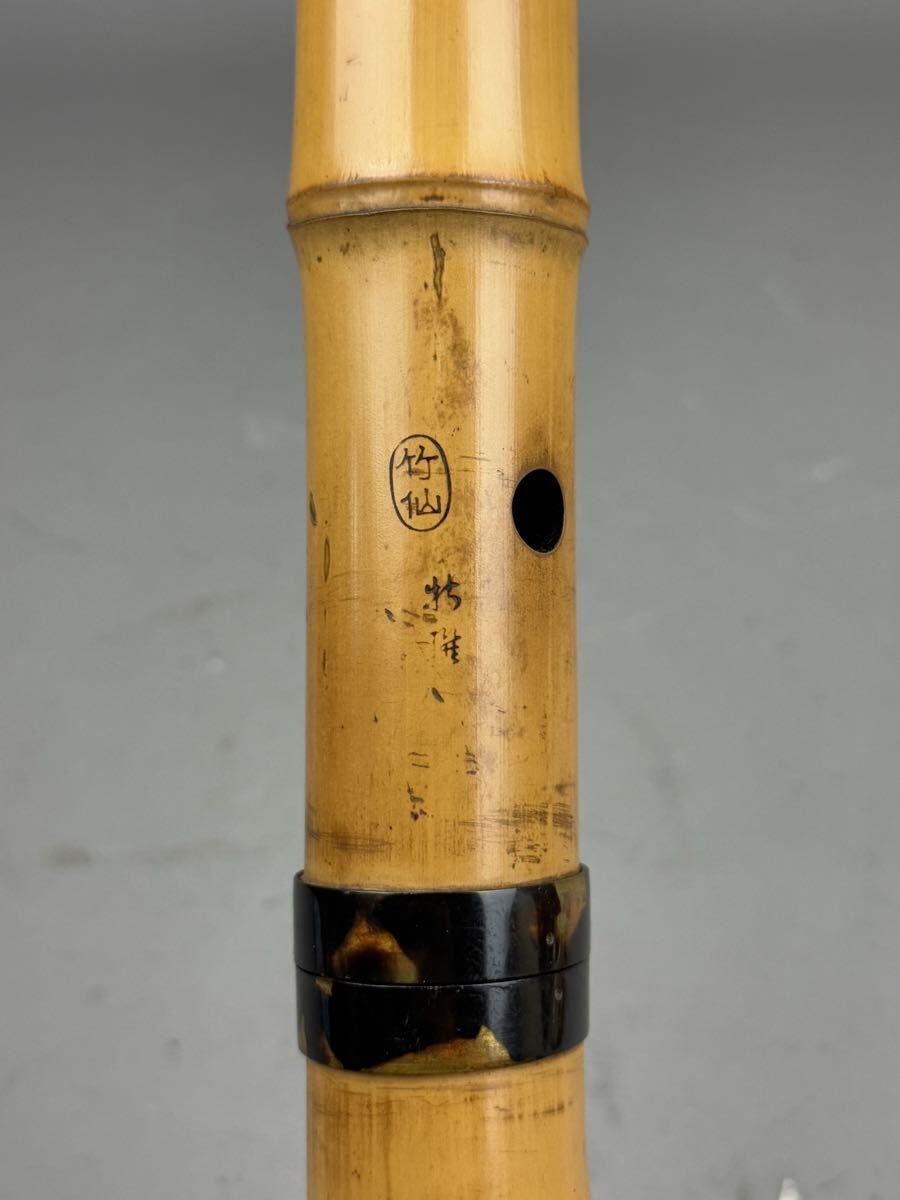 時代和楽器 尺八 竹仙 焼印 古竹 55㎝ 鼈甲中継 唄口 ケース付 在銘 都山流 縦笛 時代品 中継ぎ 作家物 和楽器 日本美術