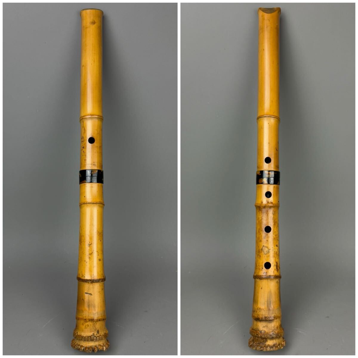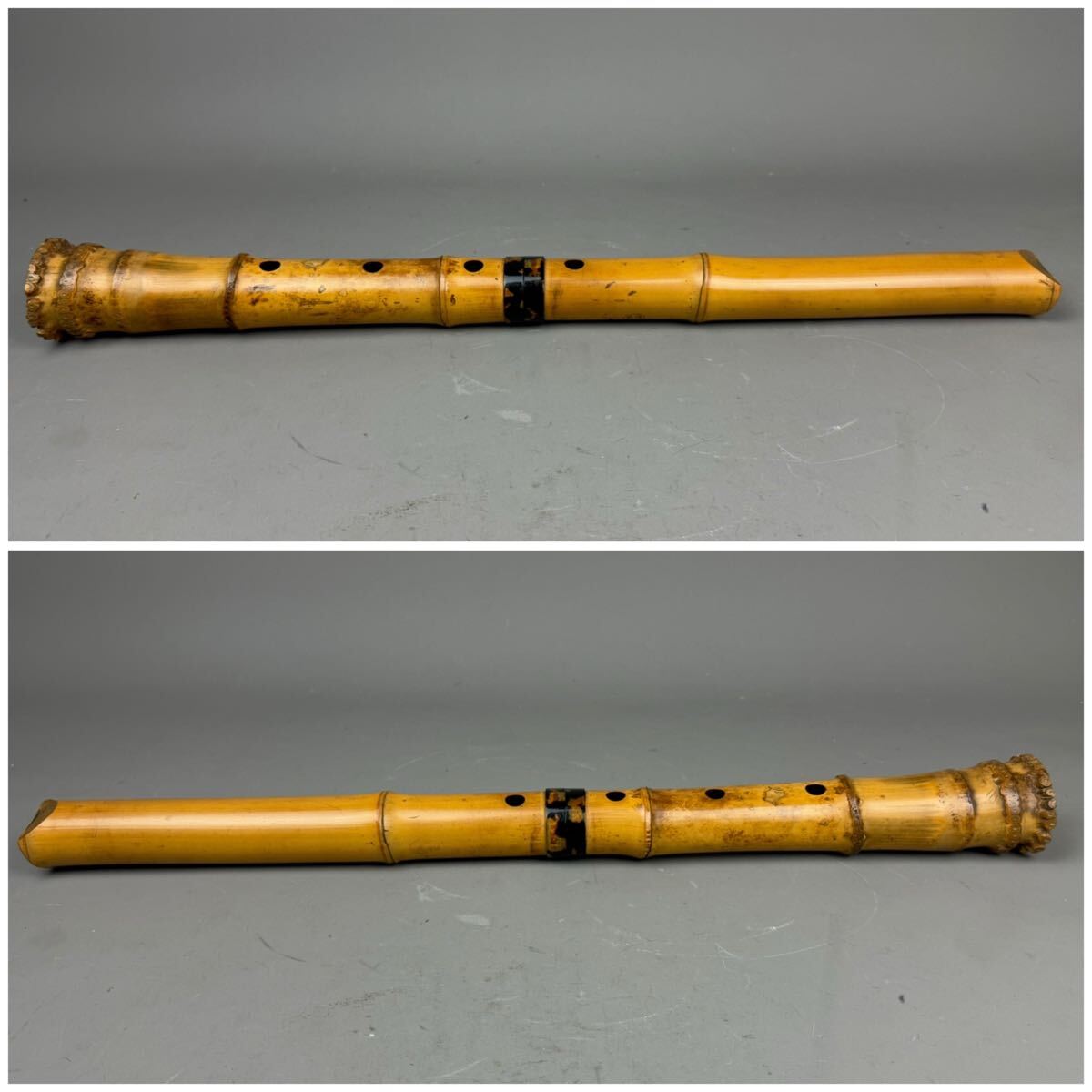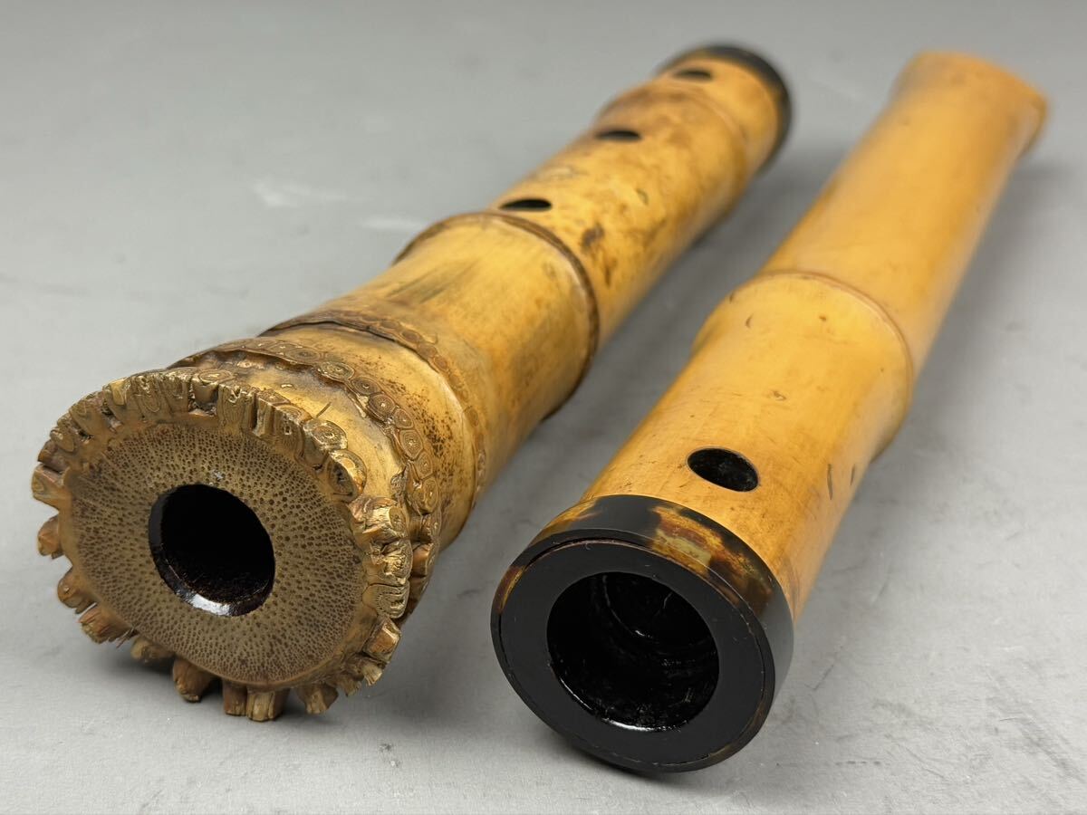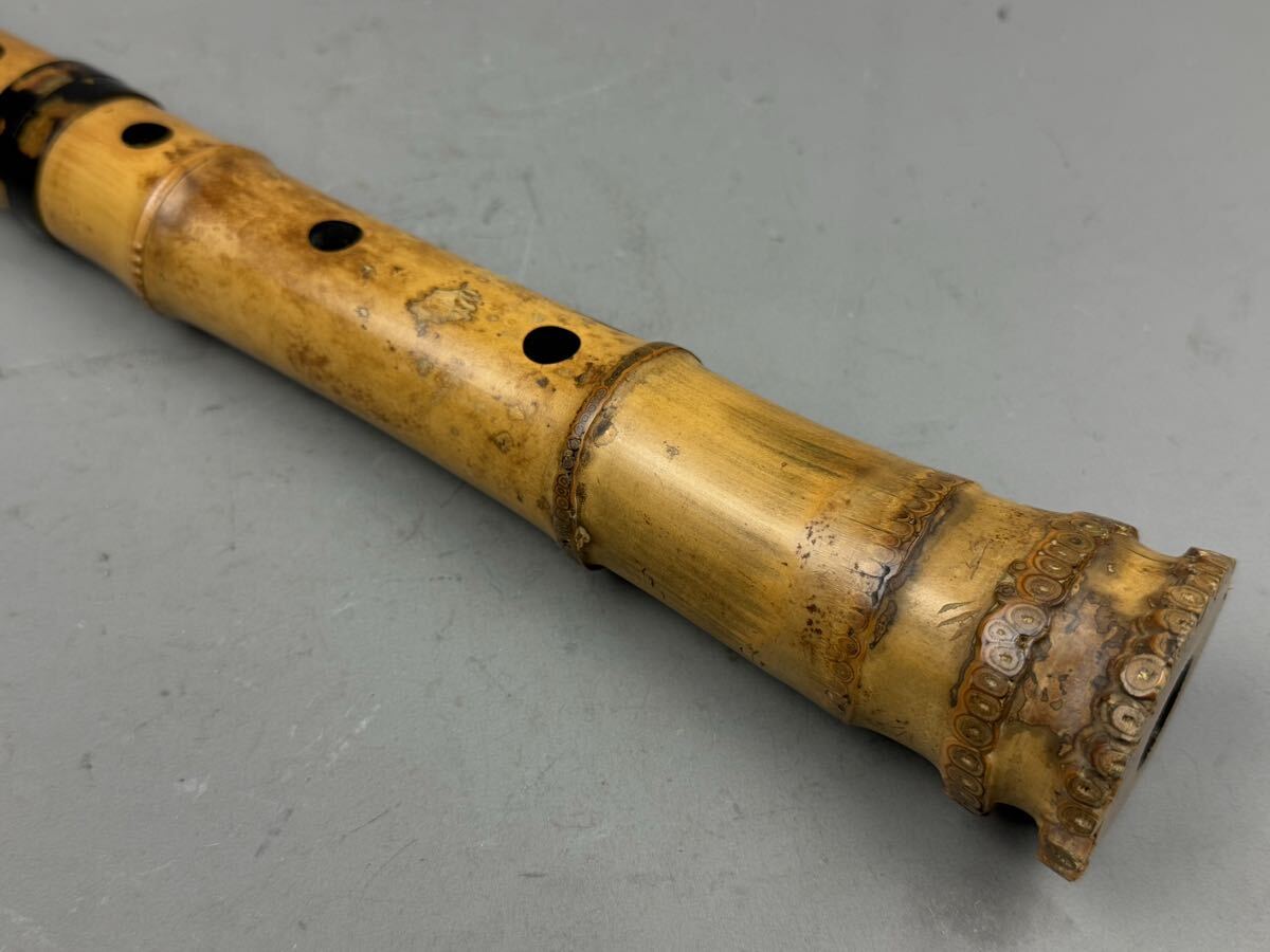 時代和楽器 尺八 竹仙 焼印 古竹 55㎝ 鼈甲中継 唄口 ケース付 在銘 都山流 縦笛 時代品 中継ぎ 作家物 和楽器 日本美術
