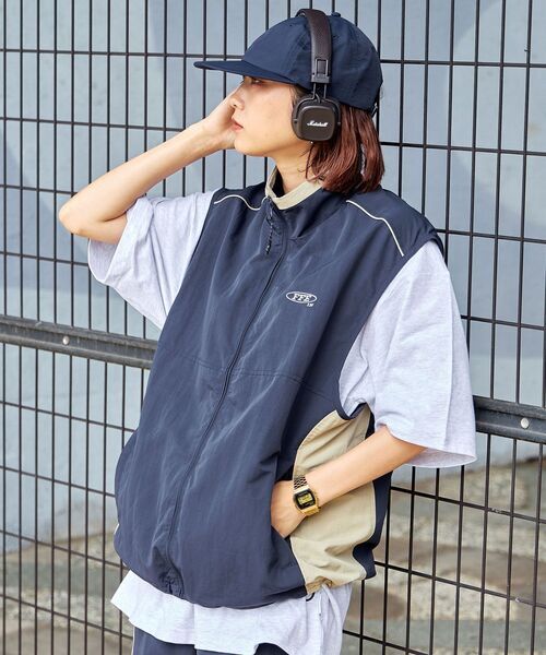 参考商品名:【FFEIN(フェイン)】スタンドナイロン配色切替ベスト / 刺繍 ドローコード ブロークコア 【セットアップ対応】