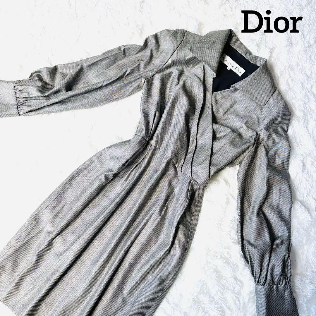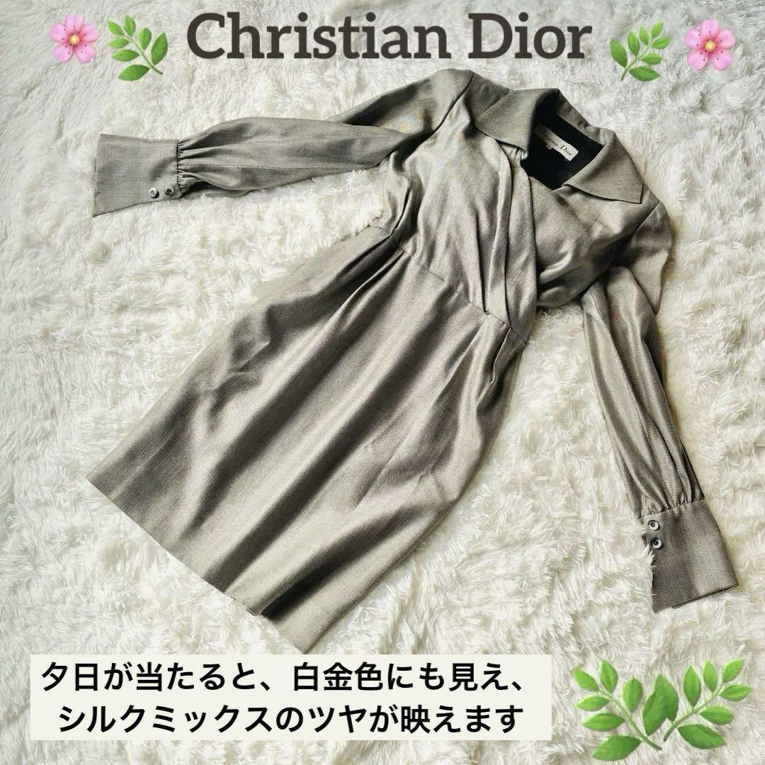 【ワンピース】クリスチャンディオールの長袖ワンピースです。シルク混の上質な生地で、程よい光沢感があり肌触りも滑らか。