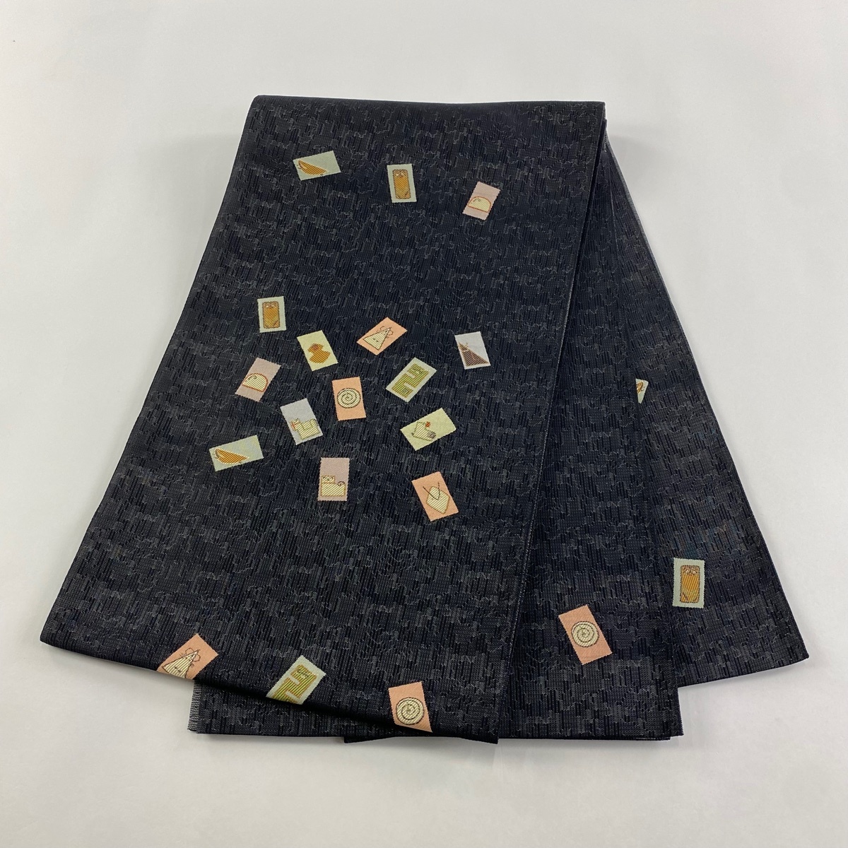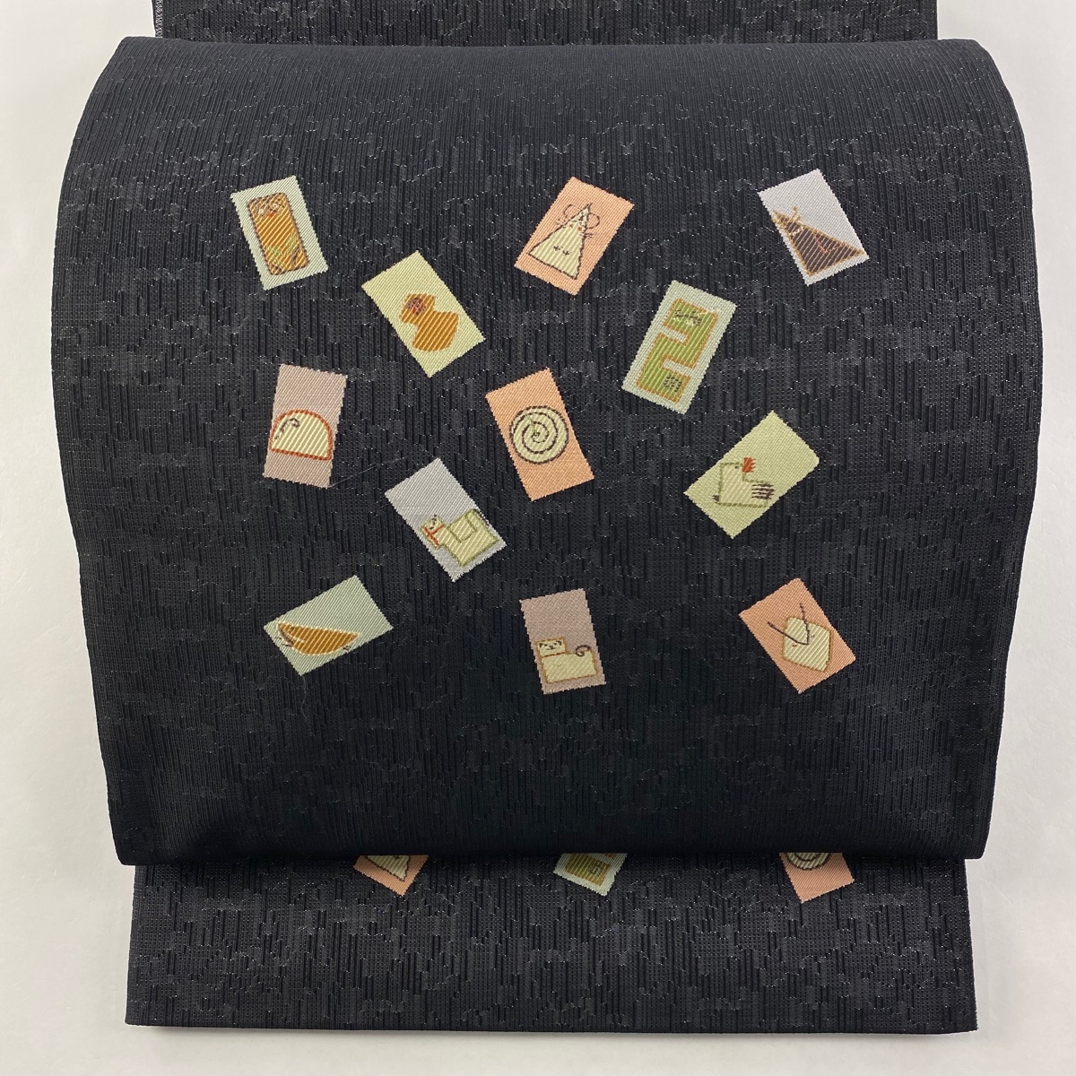 | 袋帯 美品 逸品 干支 幾何学 墨色 お太鼓柄 正絹 【中古】 |