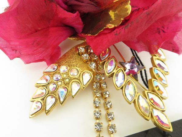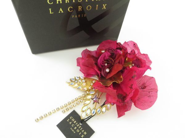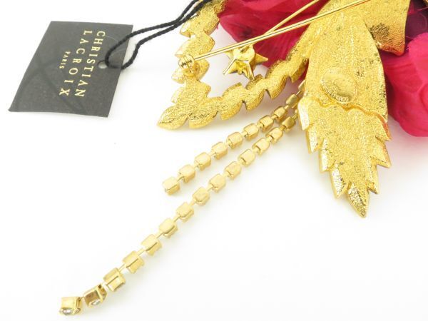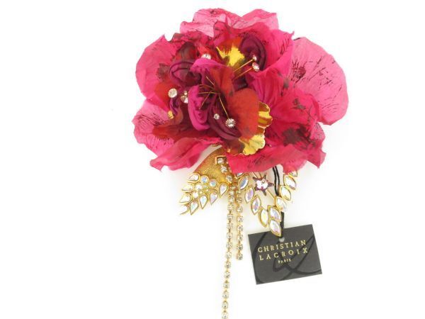 Christian Lacroix クリスチャンラクロワ コサージュ ブローチ ラインストーン 花 ゴールド金具 アクセサリー お洒落な 未使用 | |||