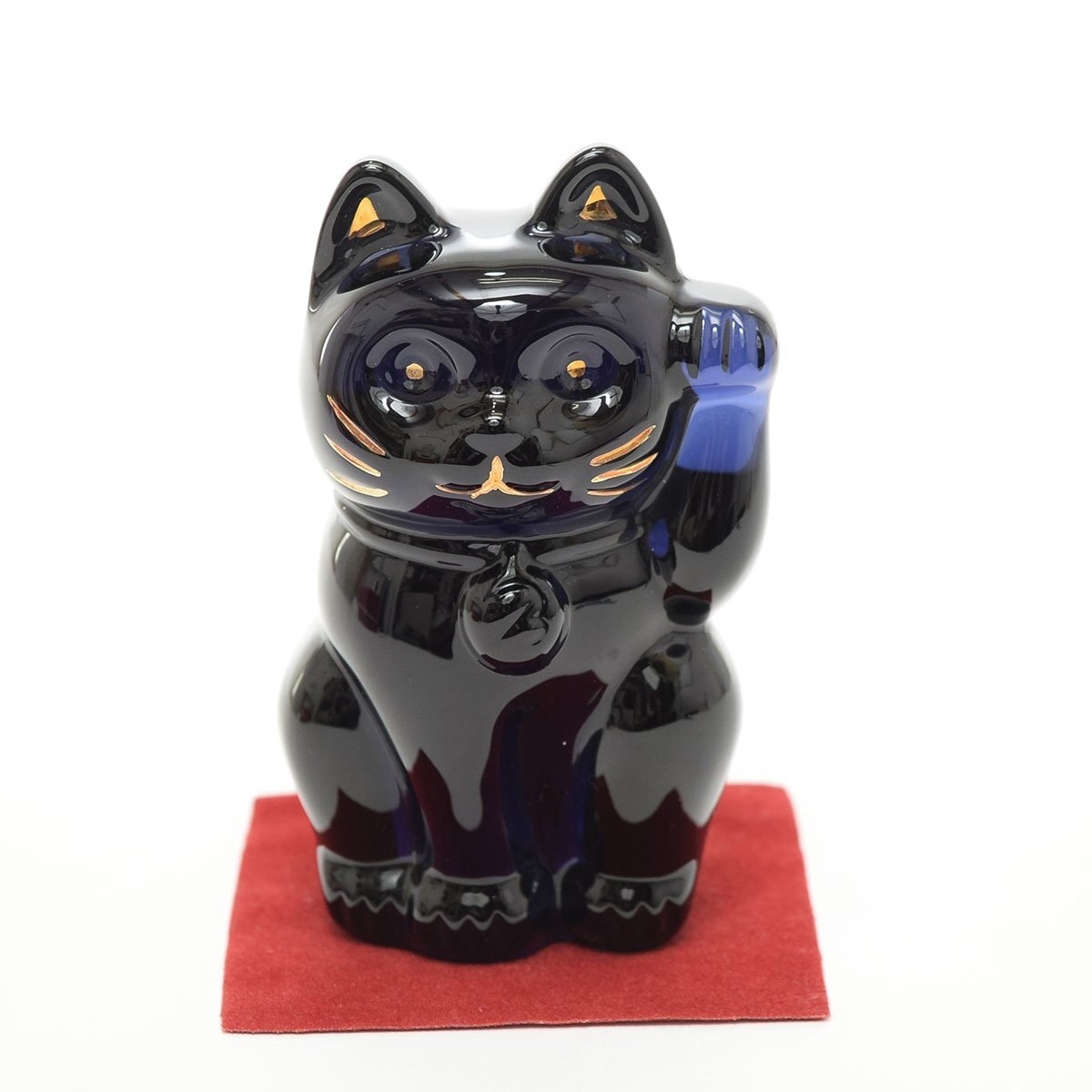 ◎525799 美品 Baccarat バカラ ラッキーキャット 『招き猫』 フィギュリン ミッドナイトブルー 栞・共箱 縁起物 インテリア