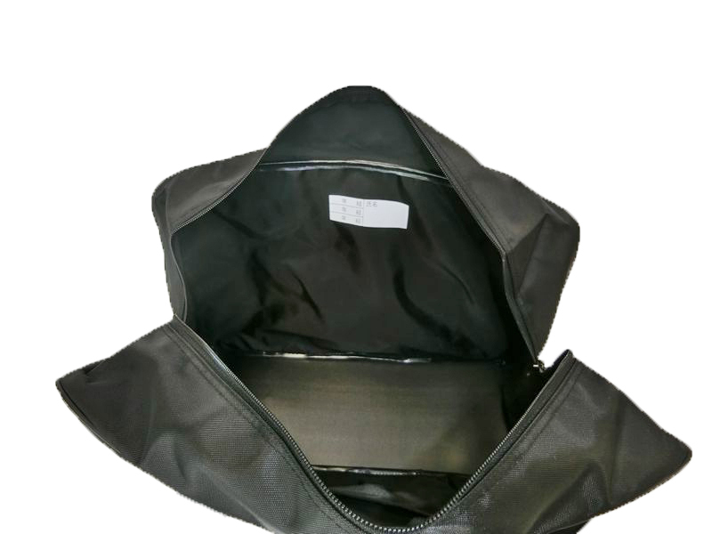 (6)外装:前ポケット(15cmX19)1つ、裏面:ファスナーポケット(47cmX30)1つ。