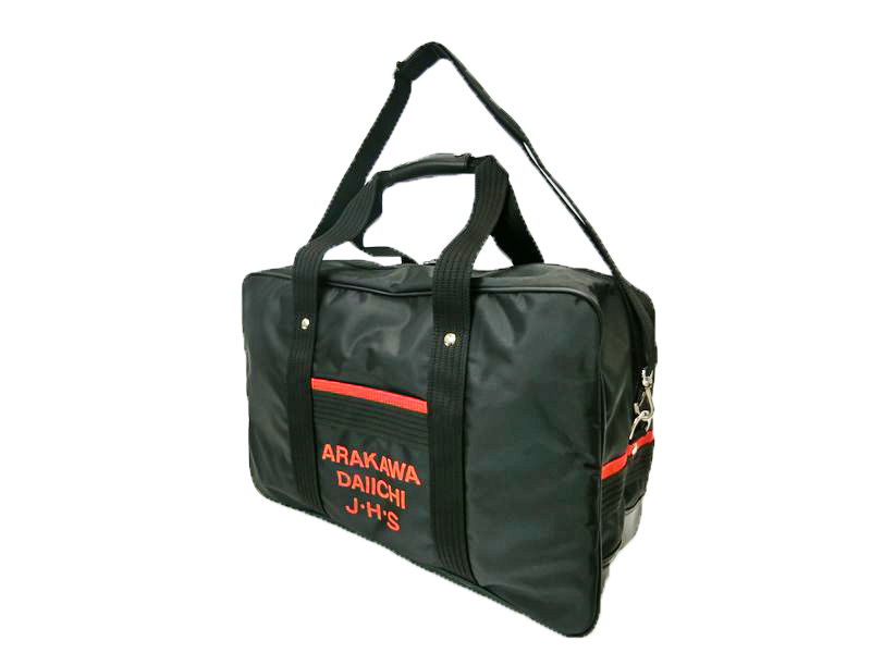 強化ナイロン製書籍等の重量物専用バッグ・ショルダーストラップ付き。赤/赤ライン