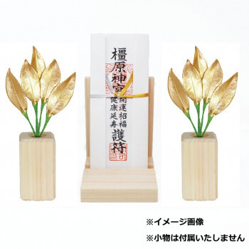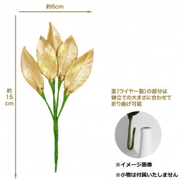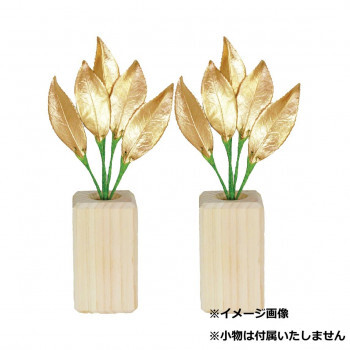 | 本物の榊を金色にプリザーブド加工しております。大変な水換えが不要でみずみずしさが長く続きます。茎(ワイヤー製)の部分は、榊立ての大きさに合わせて折り曲げ可能です。 |
