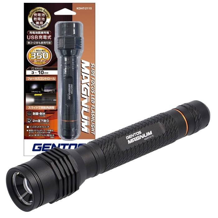 【商品詳細 】●USB充電式●スライドフォーカスシステム:ヘッド部分を前後させることで、片手で簡単に照射角調整をする事ができる。●サークルビーム:円形照射で美しい照射面。●インスタントオフスイッチ:点灯後、一定時間経過後にスイッチを押すと、どのモードからでも一回の操作で消灯できます。●アンチローテートデザイン:ヘッド部を八角形に加工することでしっかりと面を捉え、転がりづらいデザイン。グローブをしたままでも指が滑らず、スライドフォーカスしやすい。●チャージングインジケーター:充電中の充電状態をお知らせ。●テールスイッチ