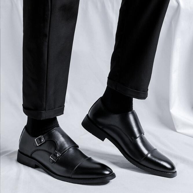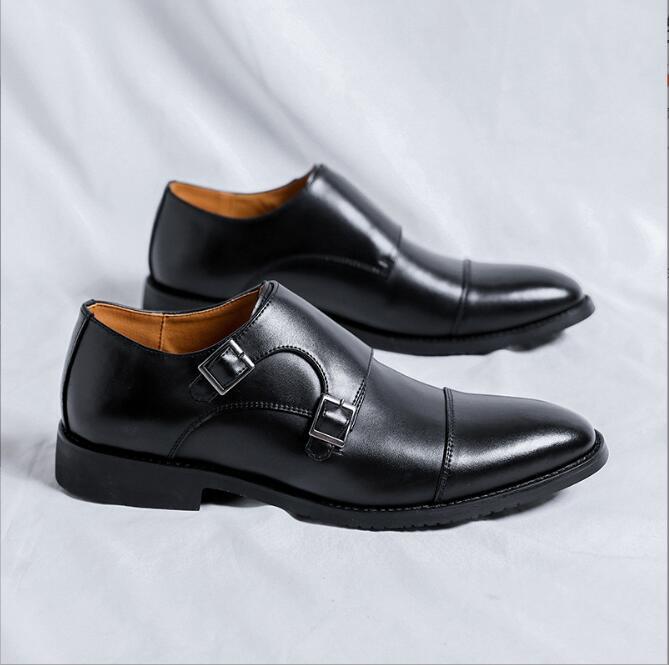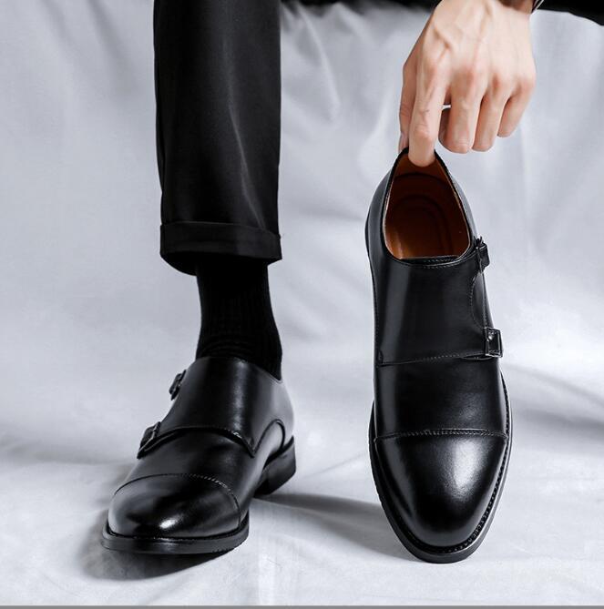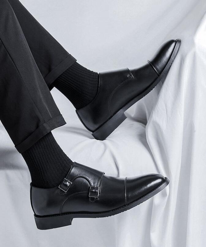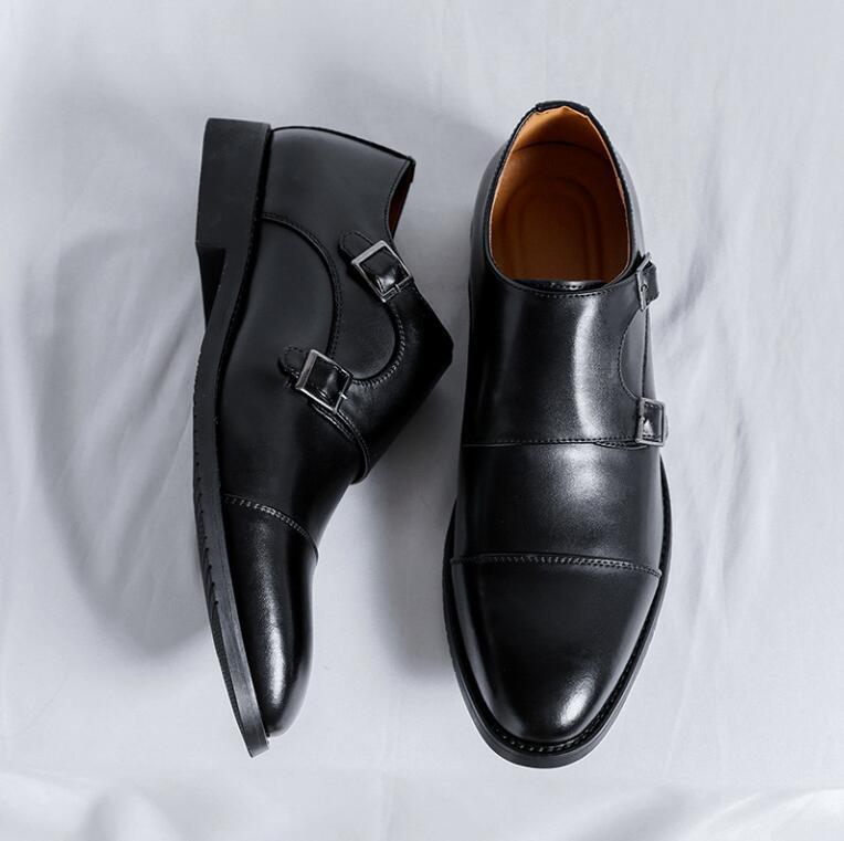 新入荷ダブルモンクストラップ メンズ レザーシューズ 職人手作り ビジネスシューズ 紳士靴 革靴 ブラック24~27cm