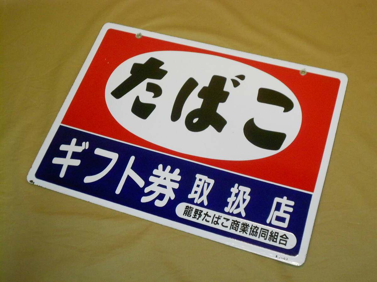 古いホーロー看板★たばこ・ギフト券取扱店・滝野・両面★企業物・非売品