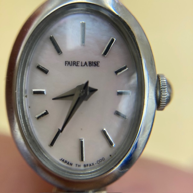 | ご覧頂きまして、誠にありがとうございます。 ■★不動品 【フェールラビーズ 腕時計】 リューズの簡単な動作確認のみ行っております。 ゆうバケットを選択いただいた場合、箱無しでの発送となります。 ■長期保管品、経年品のためキズ、汚れがあります。。 ■保管品、経年品。ご理解、ご了承の上ご入札ください。 ■段ボール箱や紙袋(もしくはビニール袋)にて簡易包装で発送致します。 ■開封の際は製品の破損に十分ご注意ください。 ◆状態 ・あくまでも中古品のため、傷、埃や汚れの付着、状態の変化などがある場合がございます。 ・経年によるヨレ、ヤケ、シワがある場合がございます。 ・あくまでも個人保管品ですので予めご了承ください。 ※詳細は写真にてご確認ください。 商品番号:K-10921 No.510 注意事項 ●店舗からの出品です。商品の真贋はご安心ください。 ●午後6時以降の落札の場合、ご落札者様へのご連絡は翌日になります。 ●店舗の定休日は木曜日です。 ●ご落札より2日以内の返信をお願いいたします。 返信がない場合、落札者様の都合でのキャンセルとさせていただきます。 その際yahooから自動的に悪い評価が付きますのでご了承ください。 ●在庫確認に関しては、店舗同時販売の為、入札のタイミングによっては売り切れの場合がございます。 気になった商品がございましたらお早目の入札をお勧めいたします。 ●お客様のモニター環境により、商品の色合いが写真と現品で異なる場合がございます。 注意しておりますが、中古の商品につきましては文章で欠点のすべてをお伝え出来ない場合がございます。ご了承ください。 ●USED品、未使用品に関して 完璧をお求めの方は入札をお控えください。 一度は人の手に渡ったものですのでご了承ください ●お客様のご都合での返品は対応致しかねます。 ご了承ください。 ●他にもブランド時計、バッグ、アクセサリー、ジュエリーなど、沢山出品してまいりますので是非ご覧ください。 【古物商許可証】 大阪府公安委員会 第62122R032631号 | ||