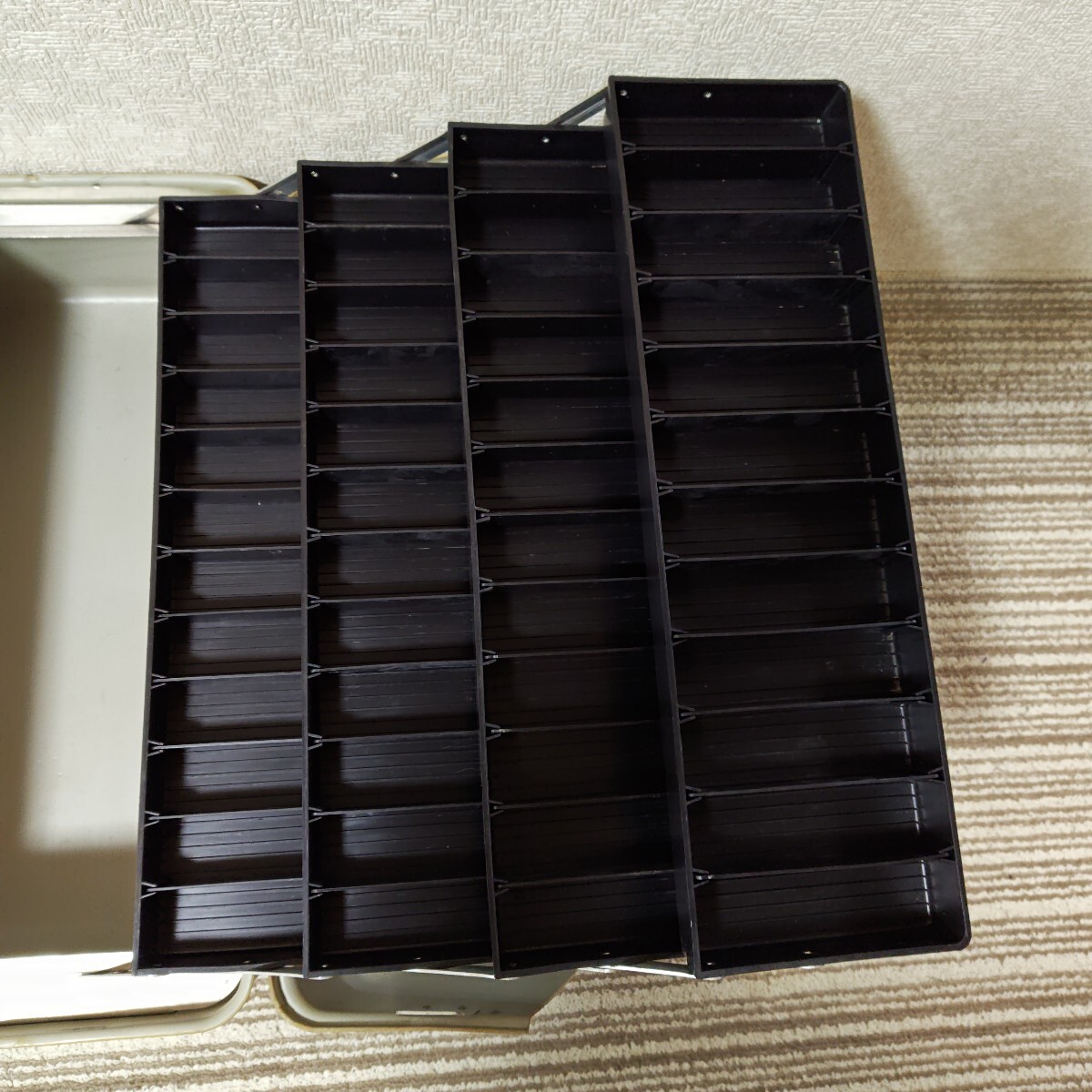 内部トレーに若干の汚れと、仕切り板の不足がありますが割れなども無く概ね良いコンディションです。