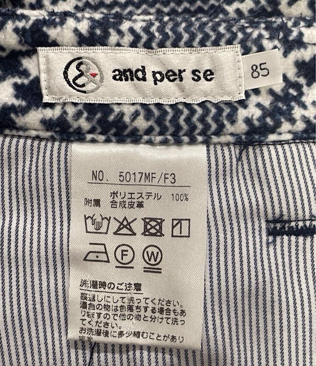 秋冬に! and per se アンパスィ ゴルフパンツ ボトムス グレンチェック ネイビー系 85サイズ W85 ゴルフウェア ◯ 新規×(A58)