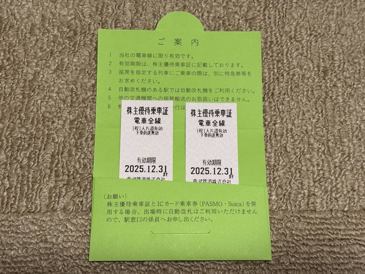 株主優待乗車証 2(2025.12.31まで) と 株主ご優待券冊子1冊のセットです。