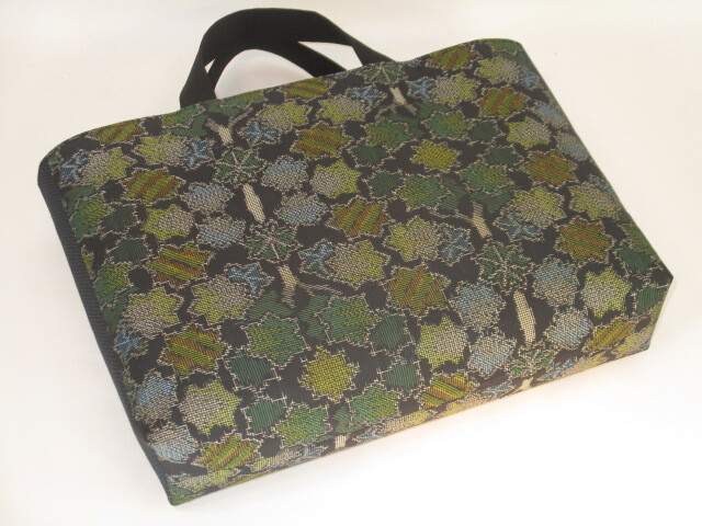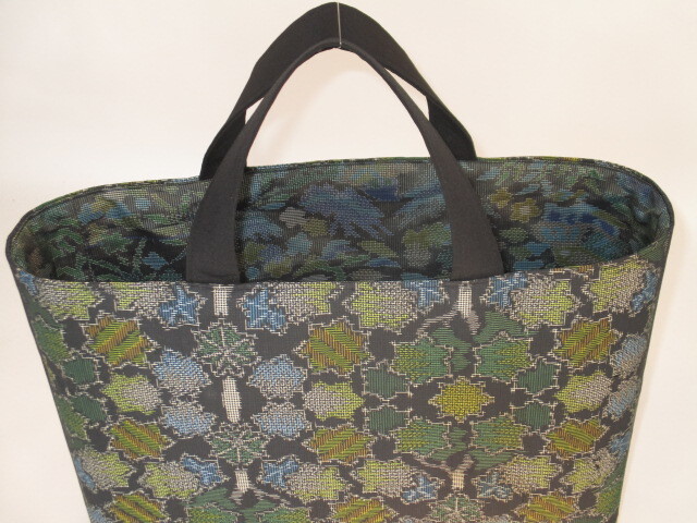 古布 正絹大島紬花柄で作ったたっぷりバッグ