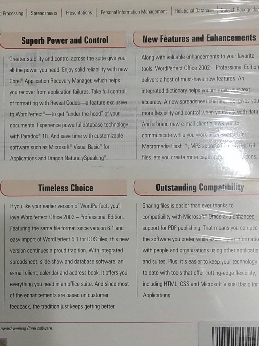WordPerfect 10、QuattroPro 10、Corel Presentations 10、CorelCENTRAL 10、Paradox 10、Dragon NaturallySpeaking がセットになったソフトです。