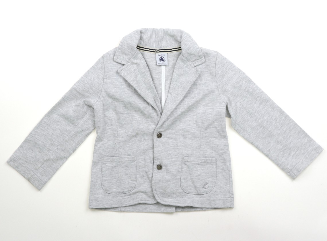 カットソー地、裏地はありません。スナップボタン留め。お腹と背中にシミが見受けられます。普段使いにいかがでしょうか。