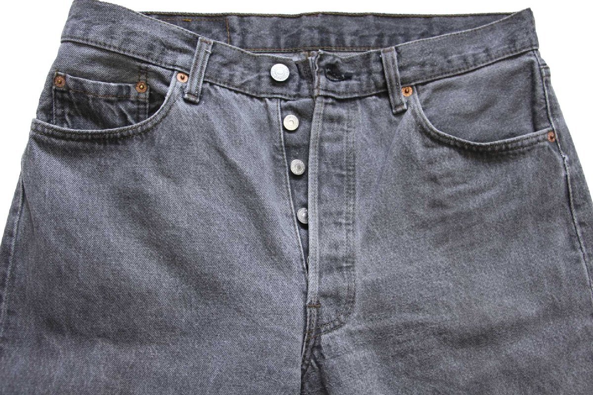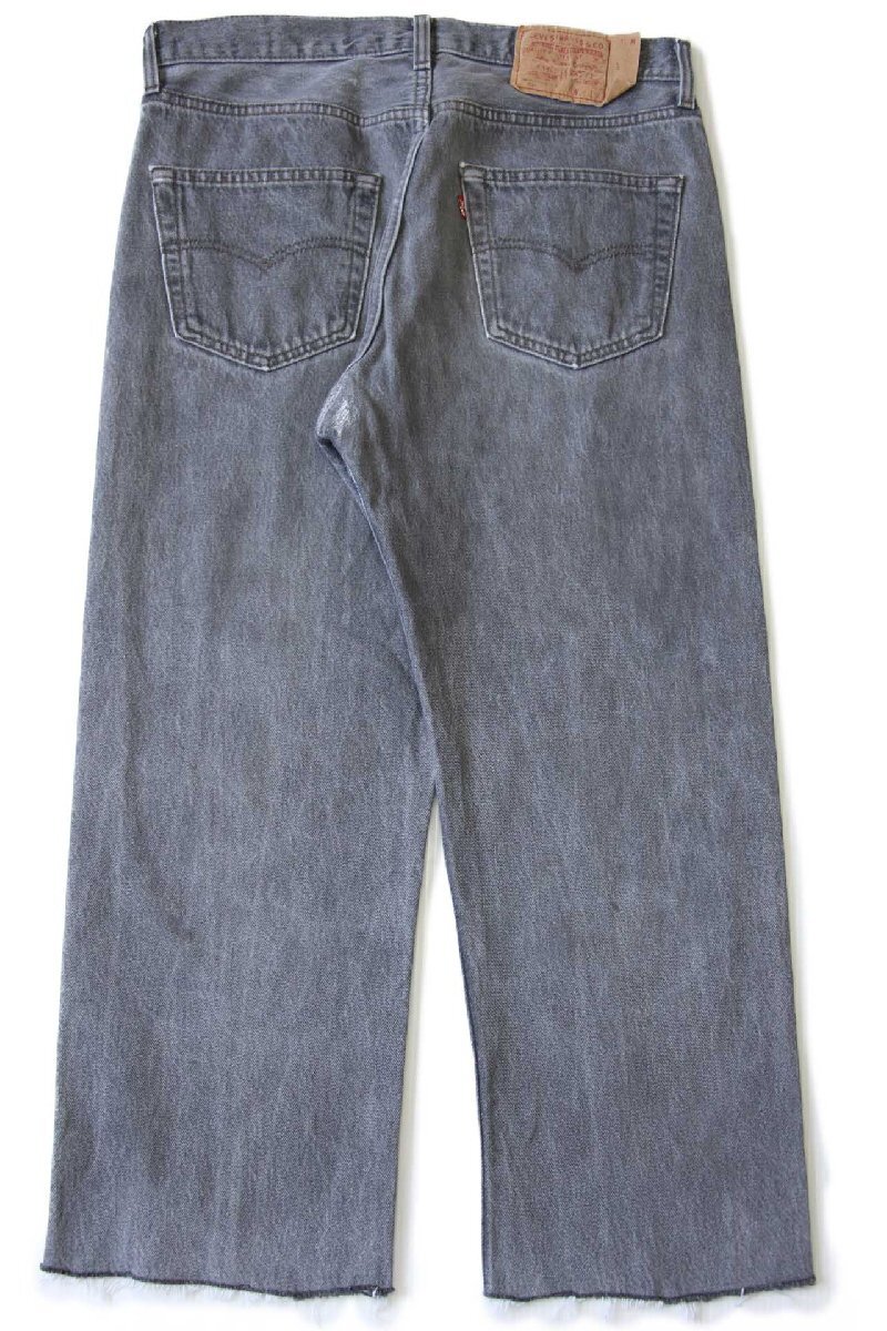 ★90s USA製 Levi'sリーバイス 501 カットオフ 先染め ブラック デニムパンツ W34★オールド ビンテージ ジーンズ ストレート リペア