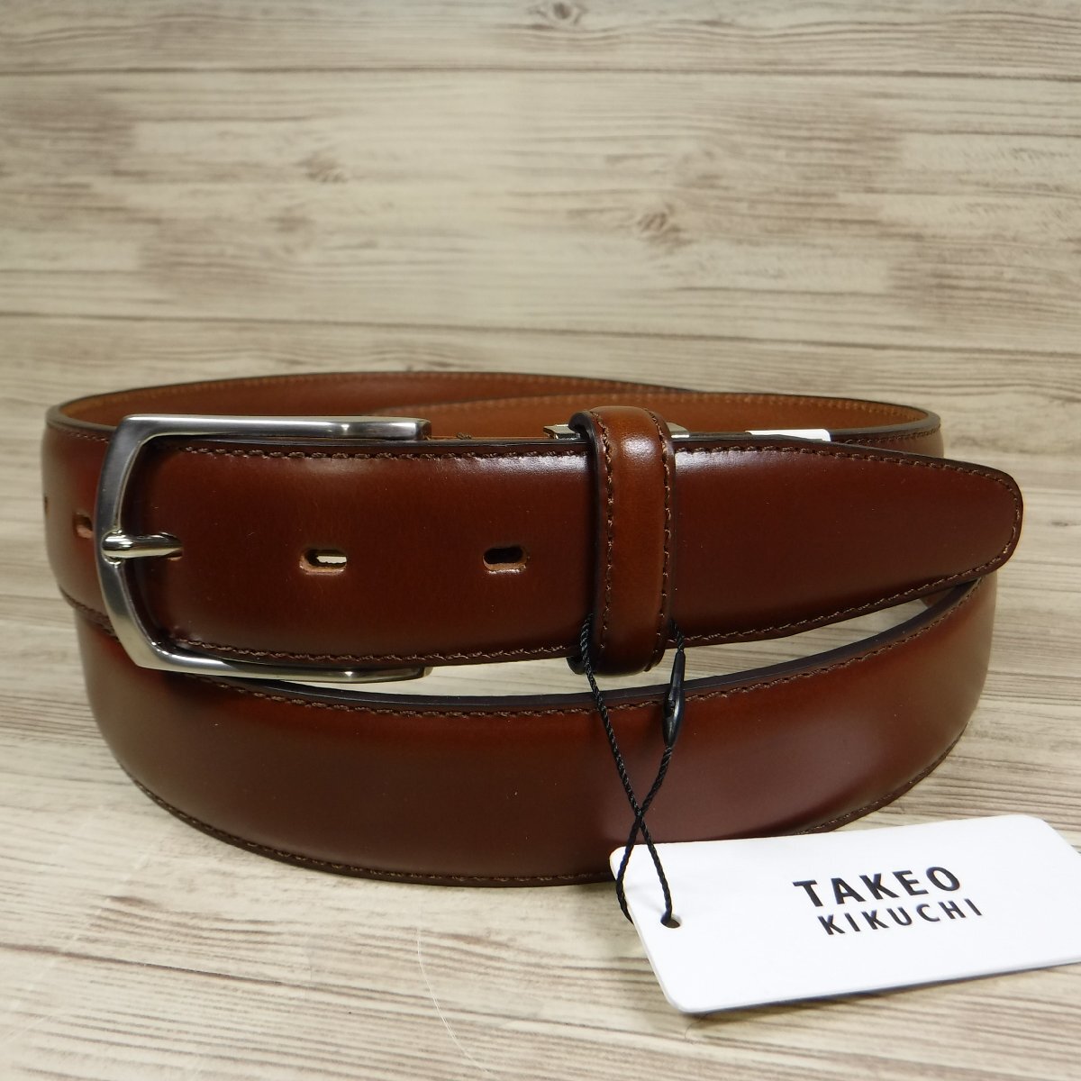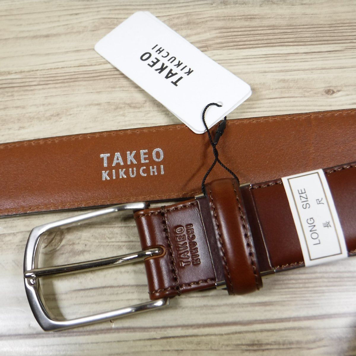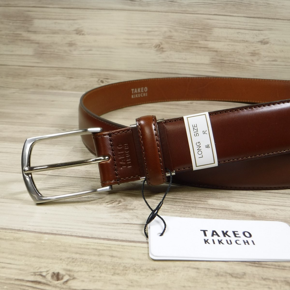V270 タケオキクチ 新品 ロングサイズ 茶 牛革 割盛り レザーベルト 日本製 牛革 XL ブラウン ビジネス カジュアル TAKEO KIKUCHI