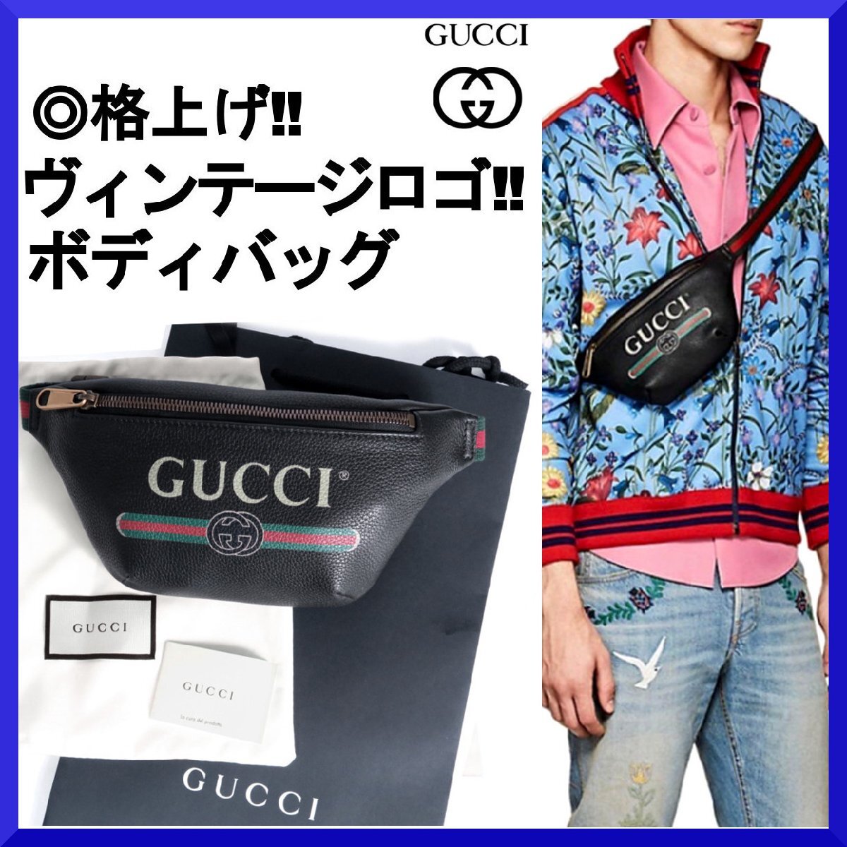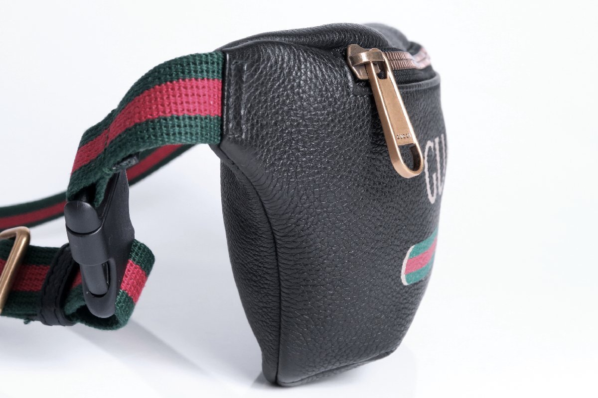 新品本物グッチGUCCI伊製【格上げ!!注目度◎VINTAGE LOGO】本革レザースリング/ショルダー/ボディ・ウエストバッグ/スモール/サコッシュ/黒