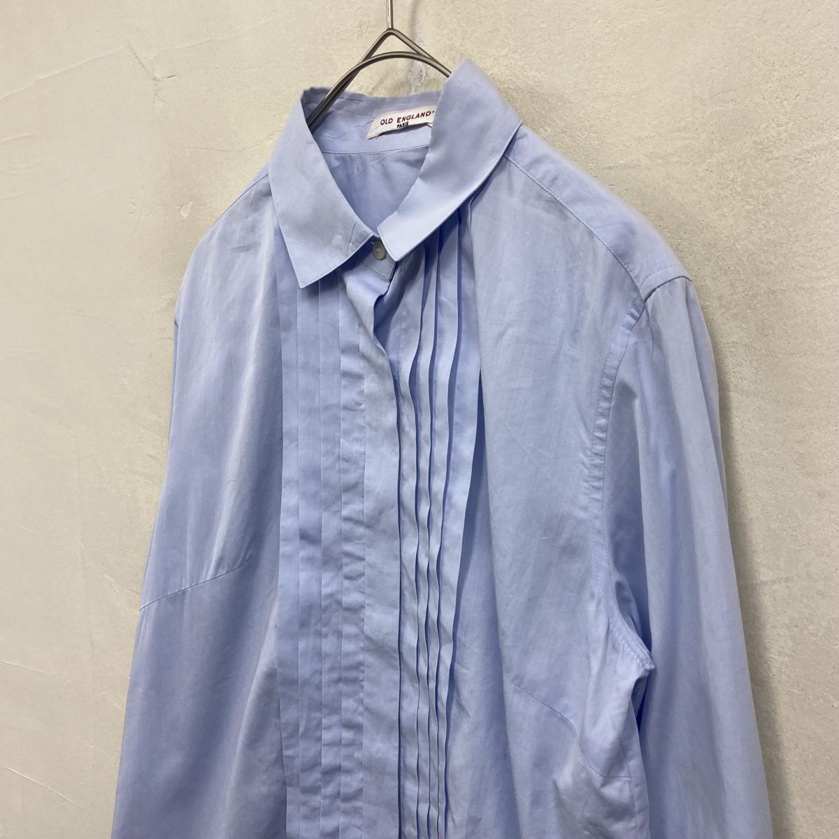 2O1762-Y◆OLD ENGLAND オールドイングランド ピンタック長袖シャツ 無地 比翼ボタン ラウンドヘム レディース ◆size36 ブルー 綿