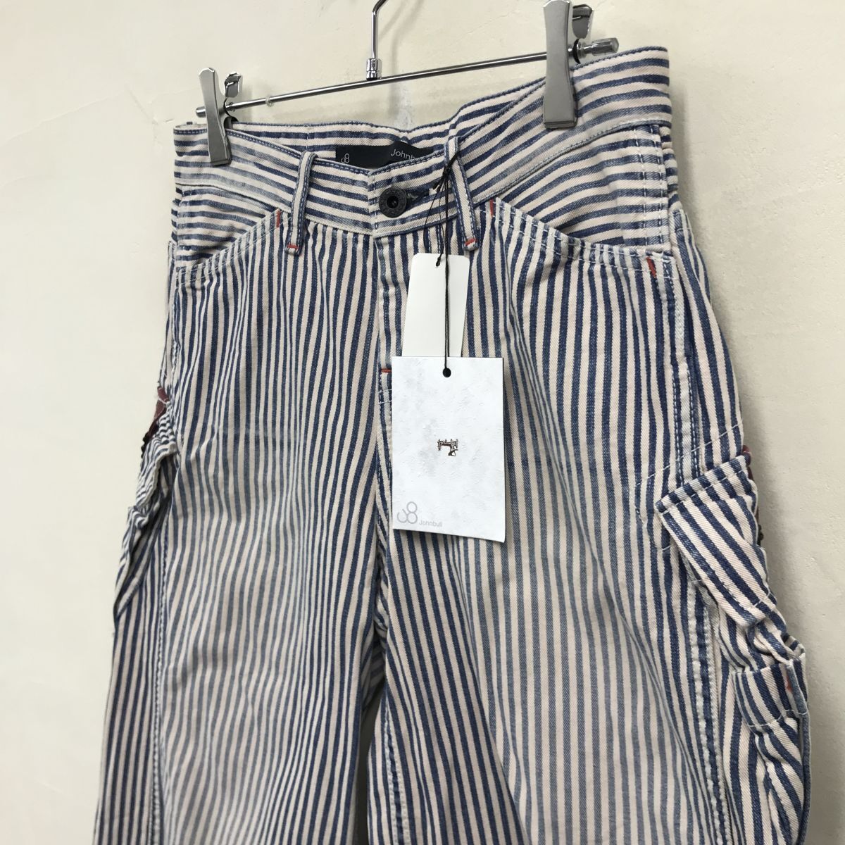 2O1940-Y◆タグ付き◆Johnbull ジョンブル デニムカーゴショーツ ジョーツ ストライプ 色落ちデザイン メンズ カジュアル◆sizeS ブルー 綿
