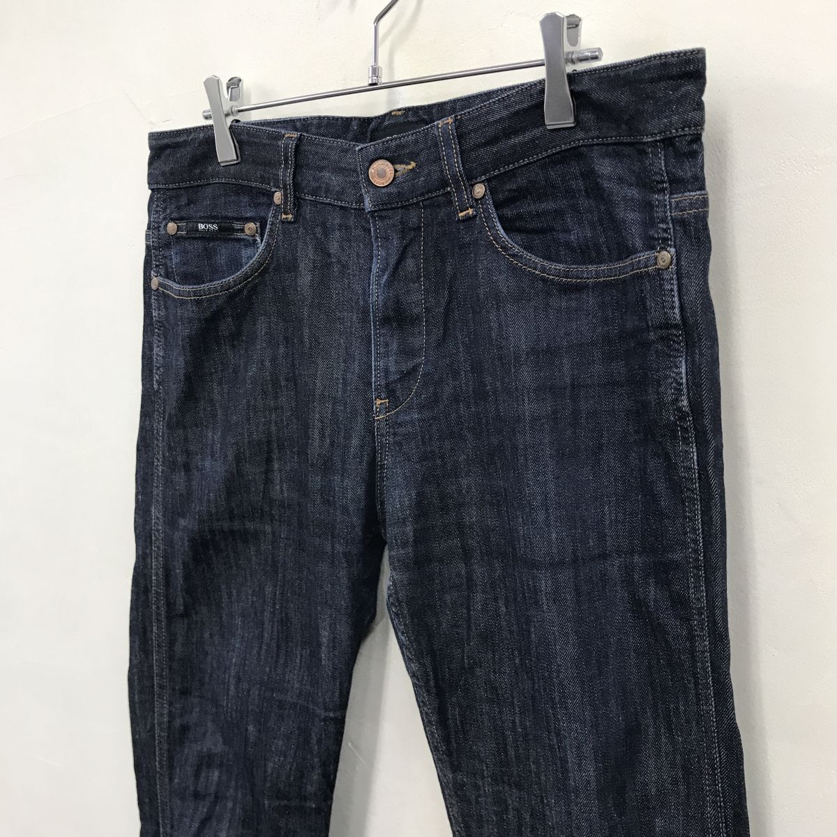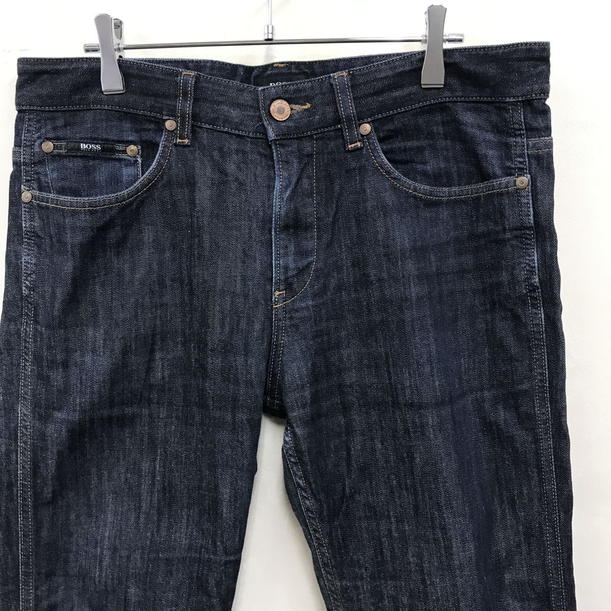 2O1947-Y◆HUGO BOSS ヒューゴボス ストレッチデニムパンツ テーパード メンズ カジュアル ◆size 32/34 インディゴ 綿 ポリウレタン