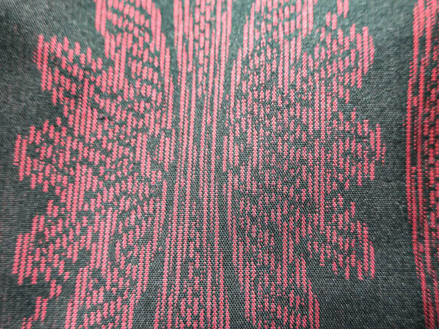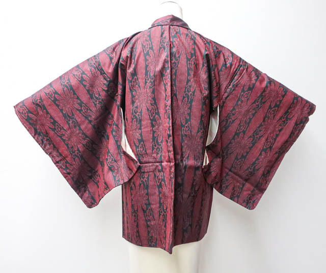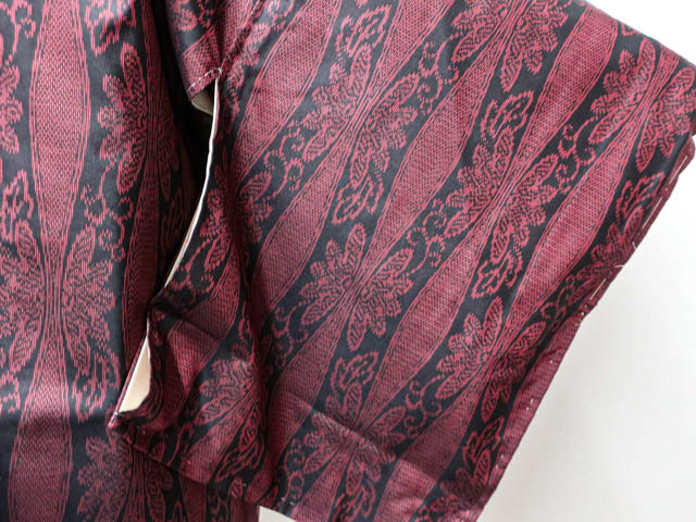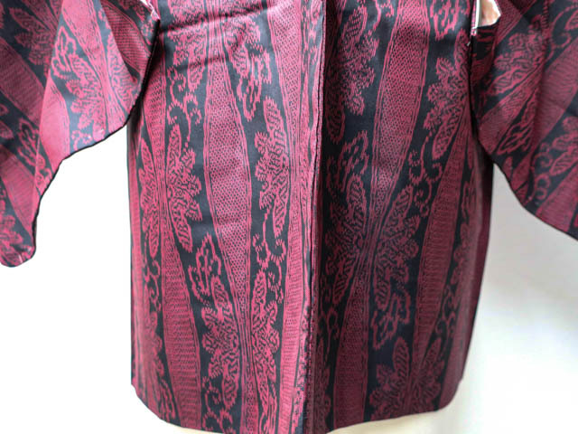 リサイクル商品のため、羽裏にしみがございますがご着用いただけると存じます。 地色は、黒・臙脂 です。 1枚目の画像が近いお色かと思われます。 素材は正絹です。 |