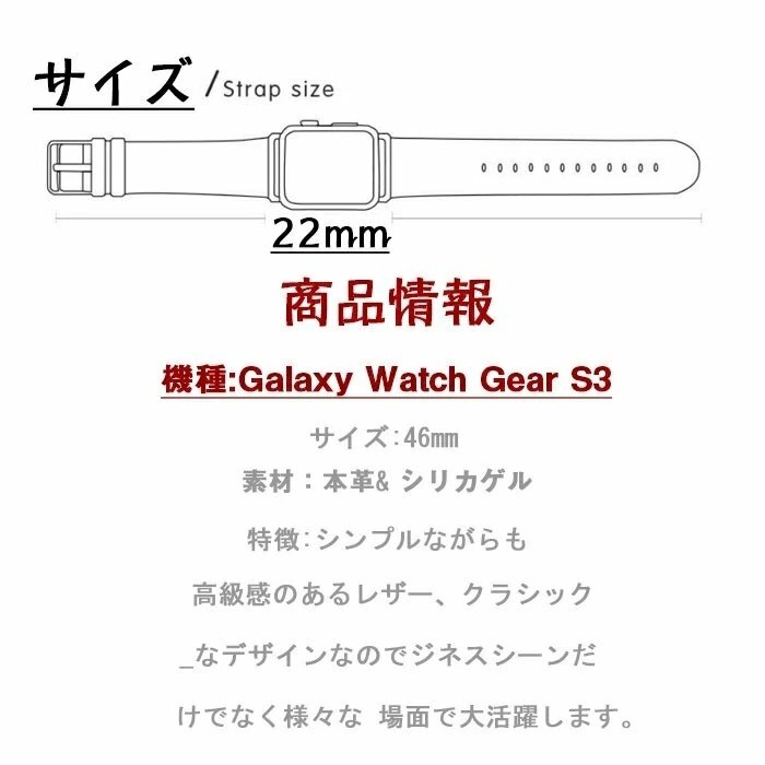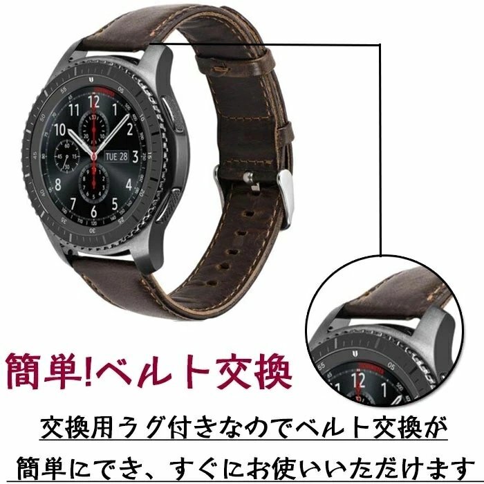 Galaxy Gear S3 対応 バンド classic 交換バンド 本革サムスン ギア S3 フロンティア 本革 Samsung Galaxy Gear S3 バンド【ブラウン】