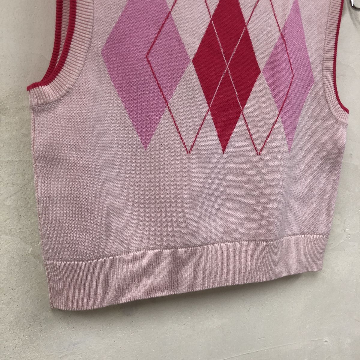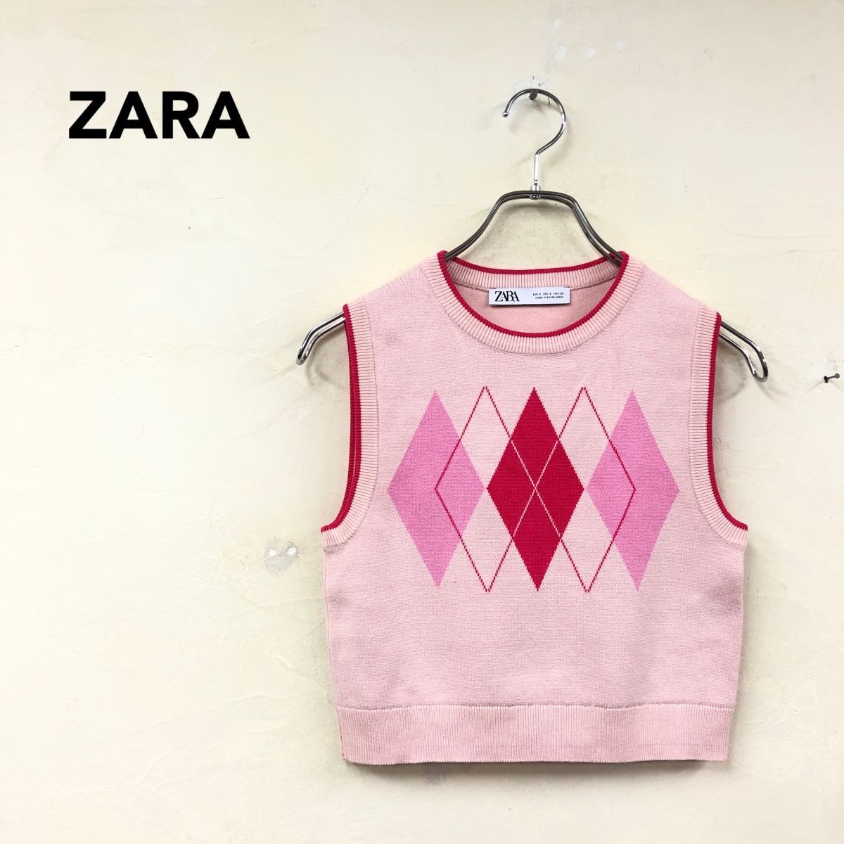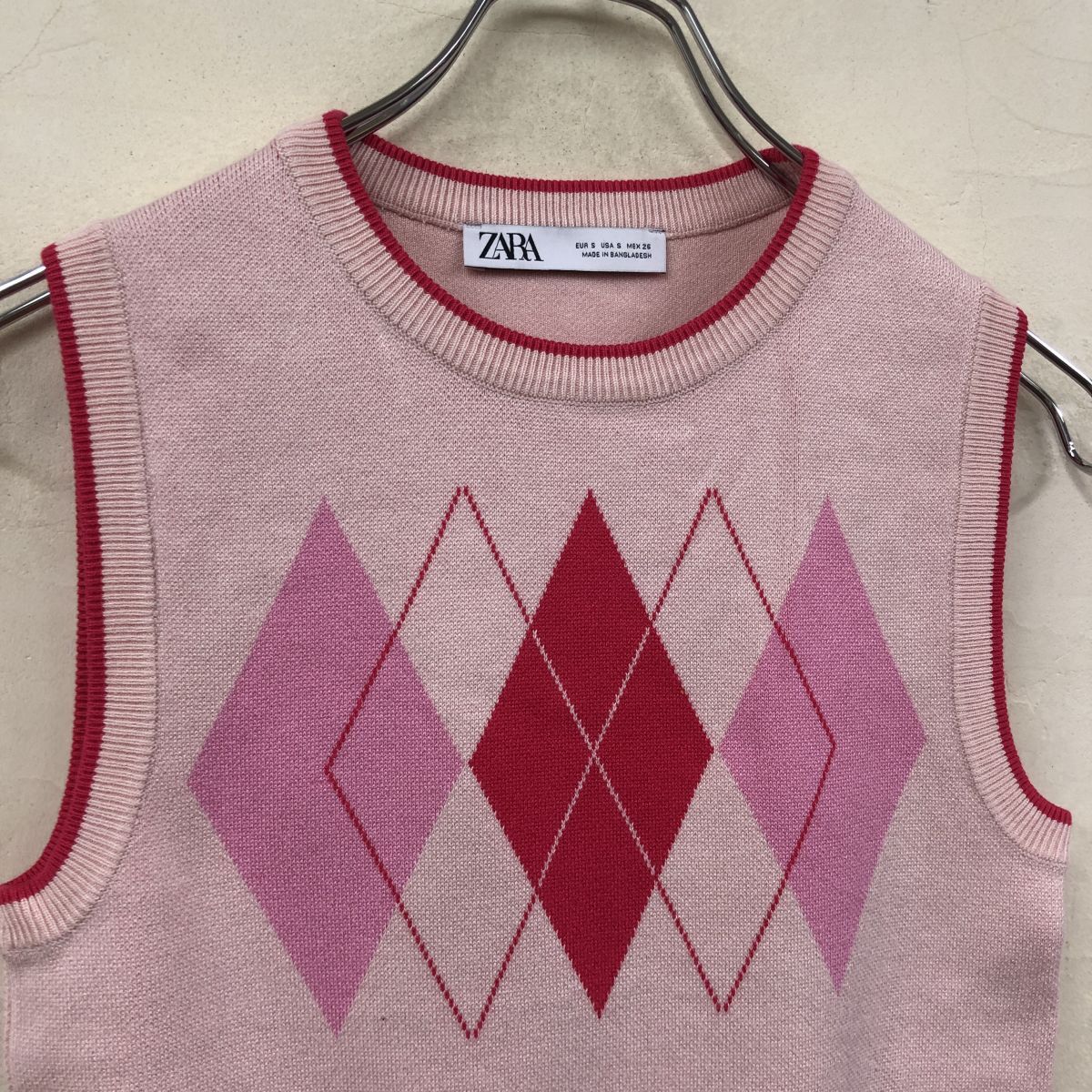 2O1690-K◆良品 ZARA ザラ クロップドニットベスト◆sizeS ピンク アーガイル 薄手 カジュアル 重ね着アイテム レディース