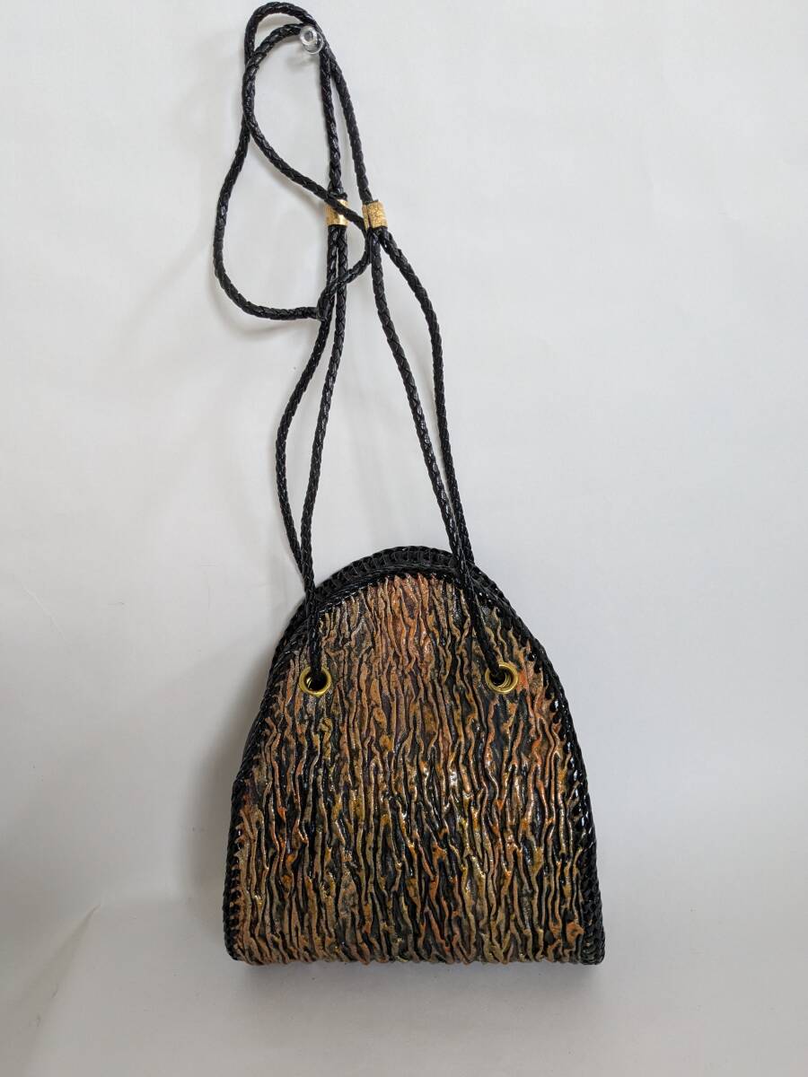 ハンドメイドの牛革ショルダーバッグです。側面には、大胆な模様をあしらえました。