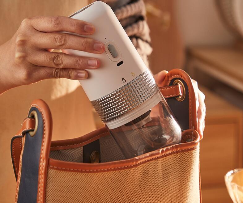 ■操作簡単/自動停止!電動コーヒーミルはワンボタンで老若男女にも操作簡単、忙しい時間も有効利用可能で、家事時間短縮して一緒にゆっくり香り満々のコーヒーを楽しむ。