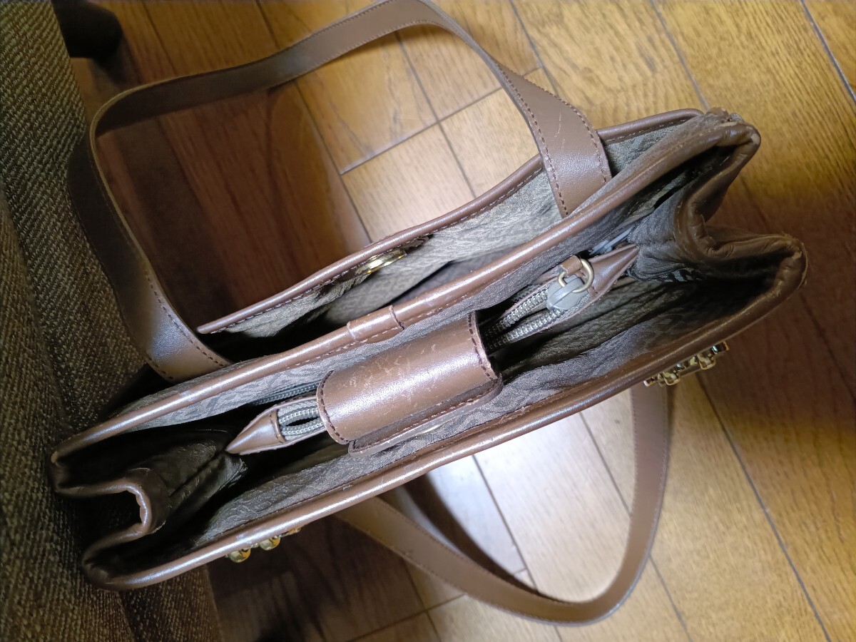 真ん中で分かれていて、ファスナーのポケットが2個あります。