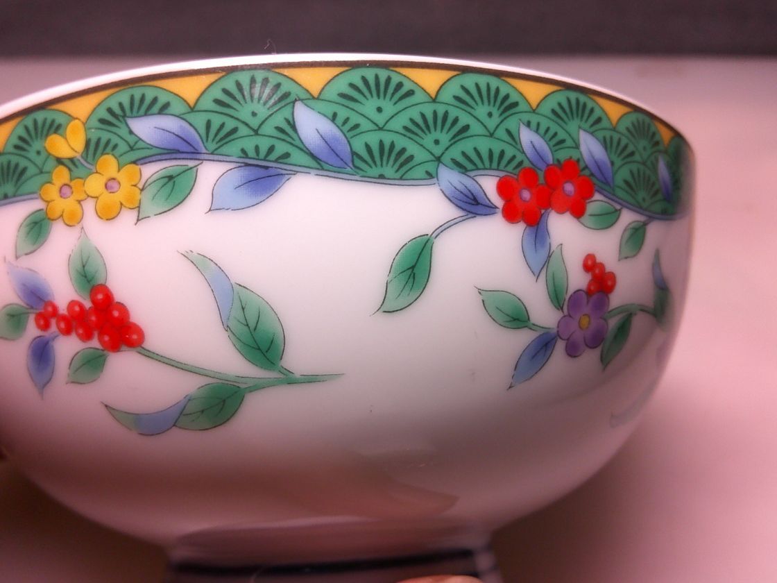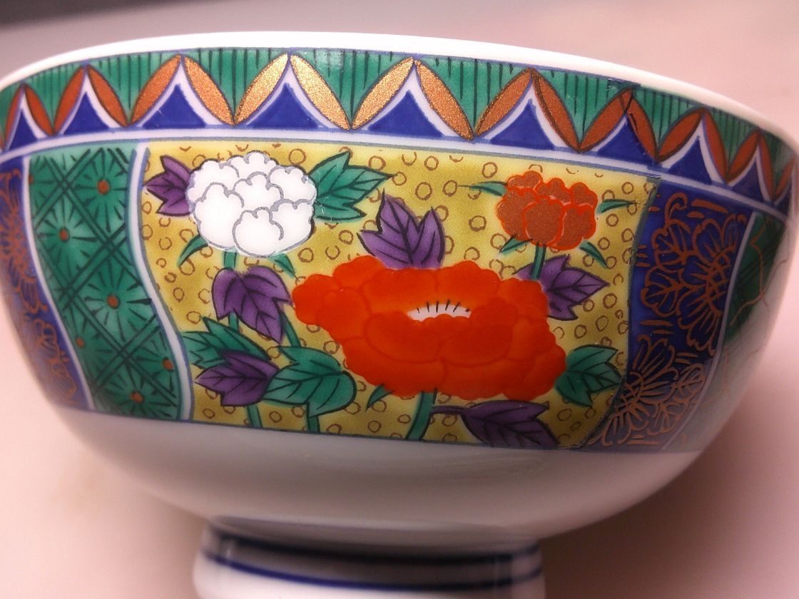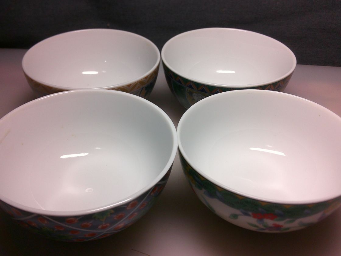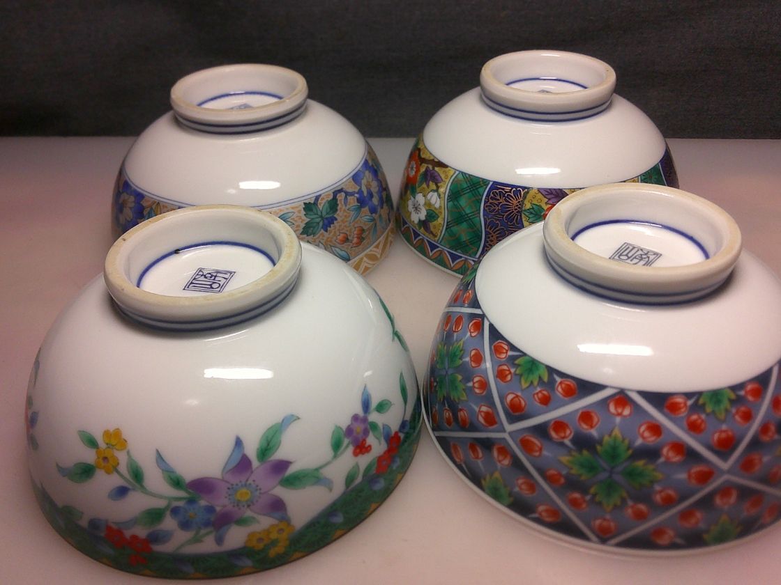 ◆有田焼・南山窯・色絵 絵替わり・茶碗・飯碗・4客・箱なし・サイズ幅11㌢奥行11㌢高さ5.5㌢◆765