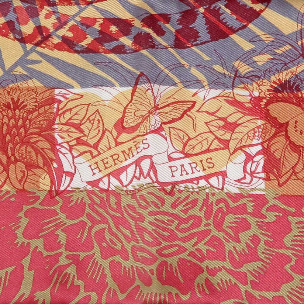 【名東】エルメス カレ70 スカーフ JUNGLE LOVE AU TAMPON シルク100% レッド系 女