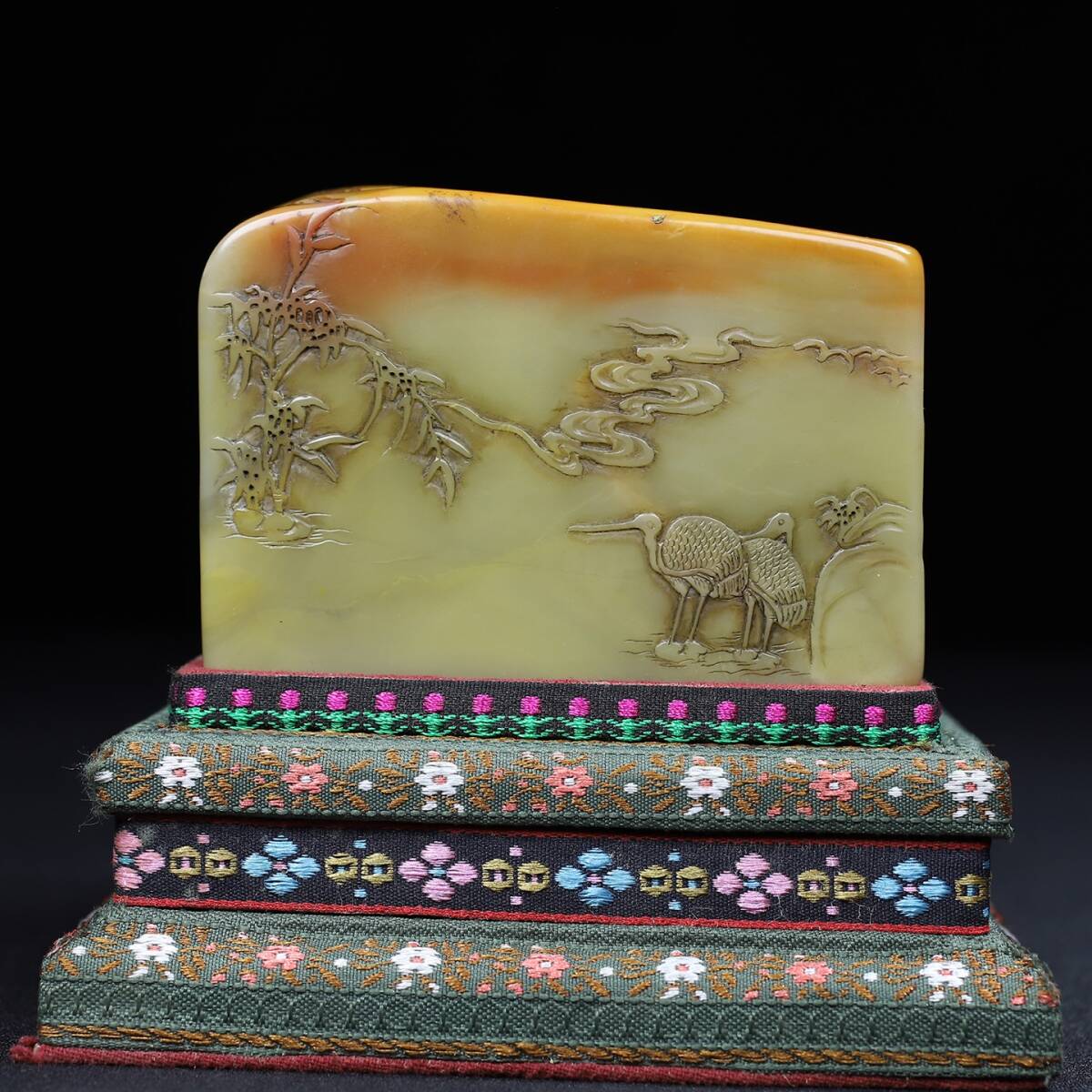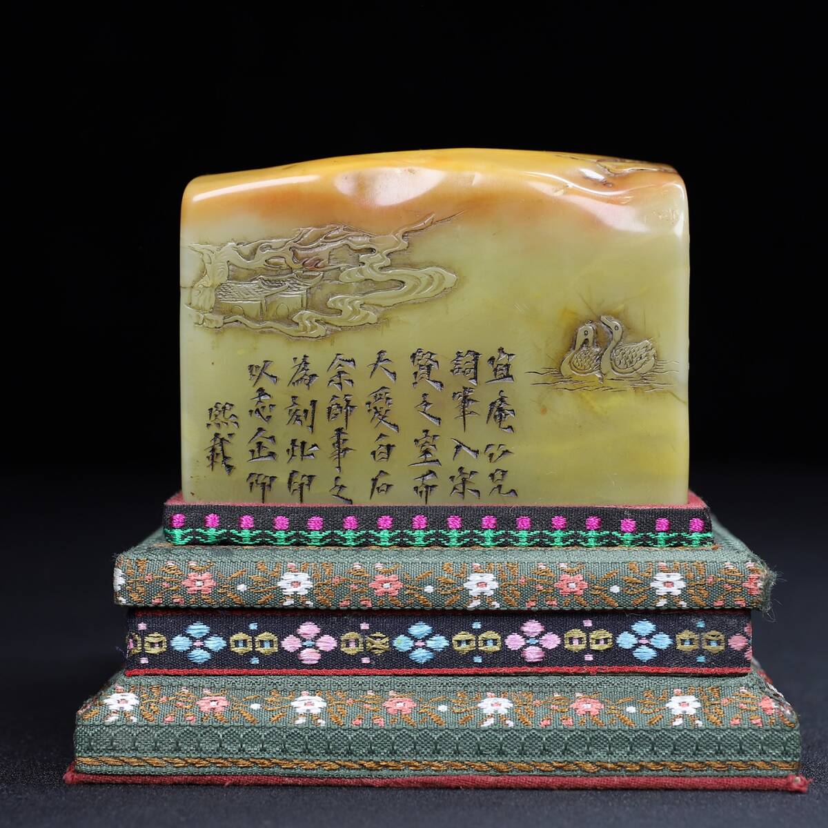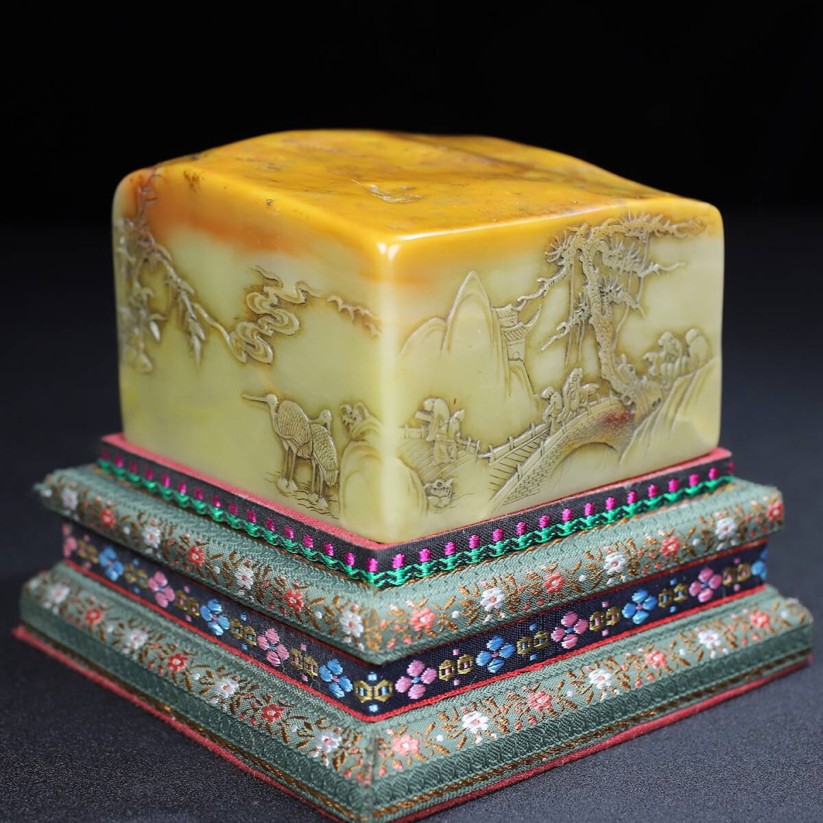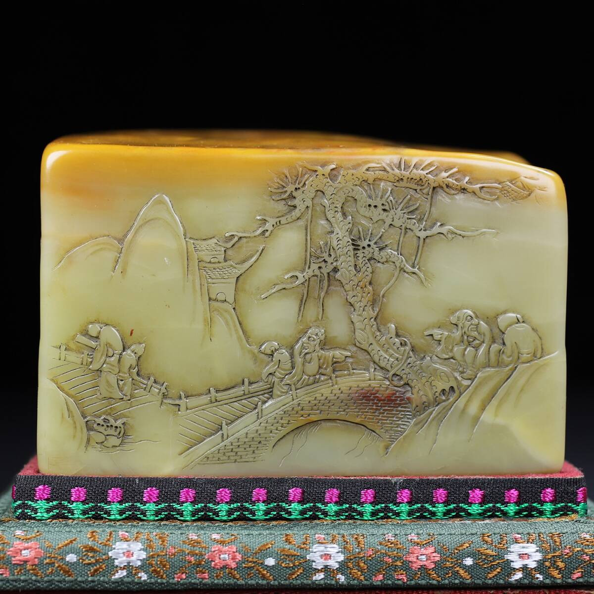 旧蔵 【清代篆刻家 呉熙載】寿山石 彫刻 山水人物物語紋 薄意印鑑 置物 天然石 手彫 篆刻 古印材 極細工 中国古玩 骨董品 古美味 210