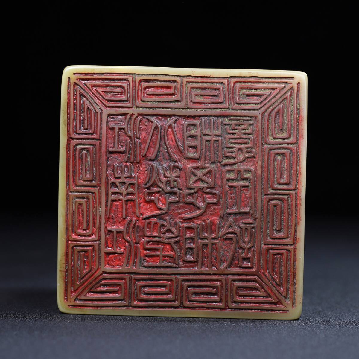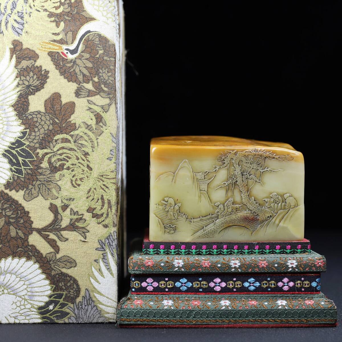 寸法:印鑑の正長9.5 cm幅9.4 cm高さ6.5 cm、正味重量1415 g
