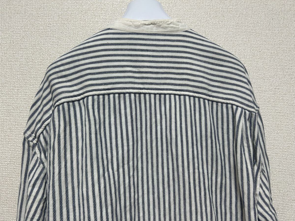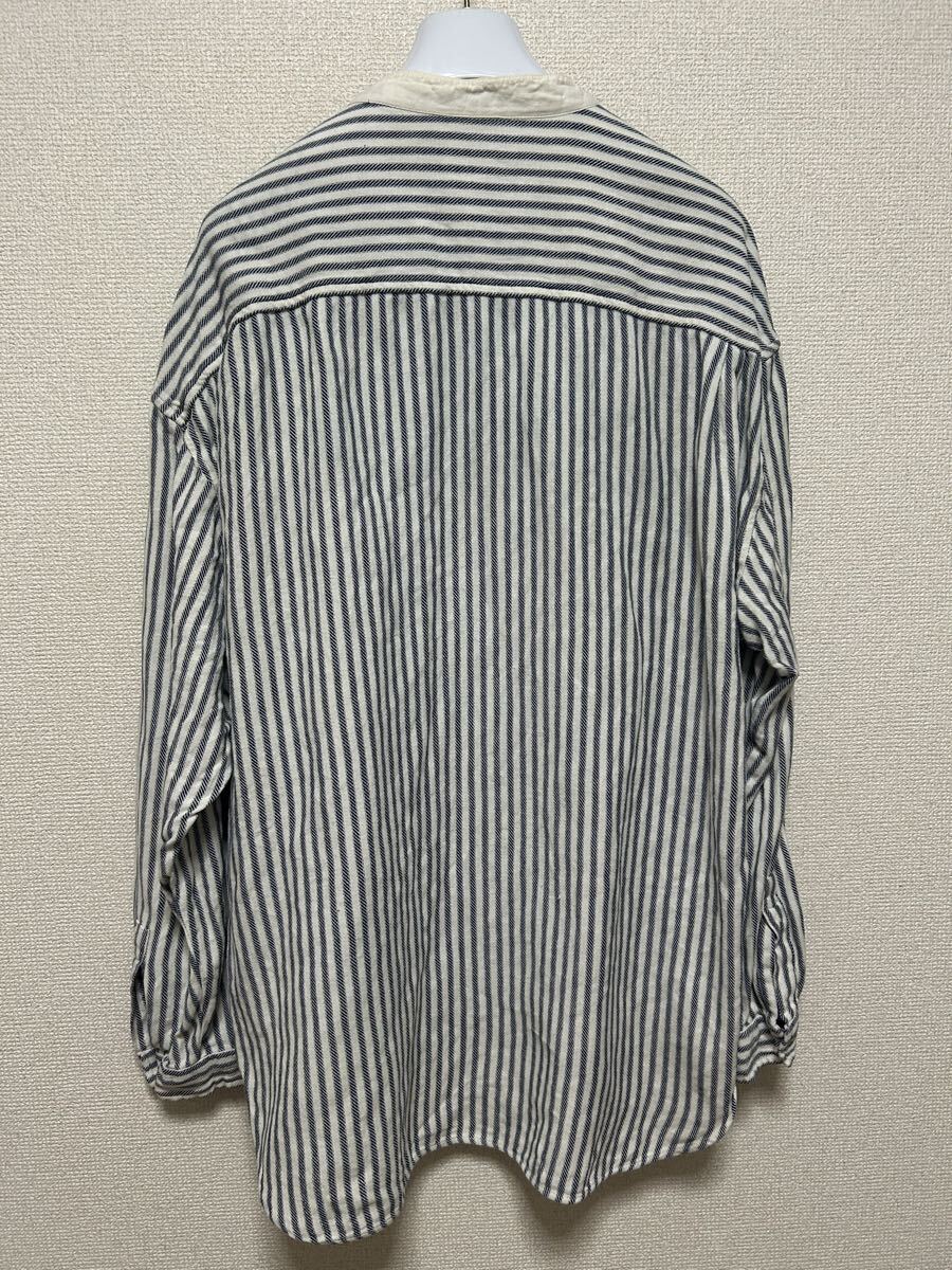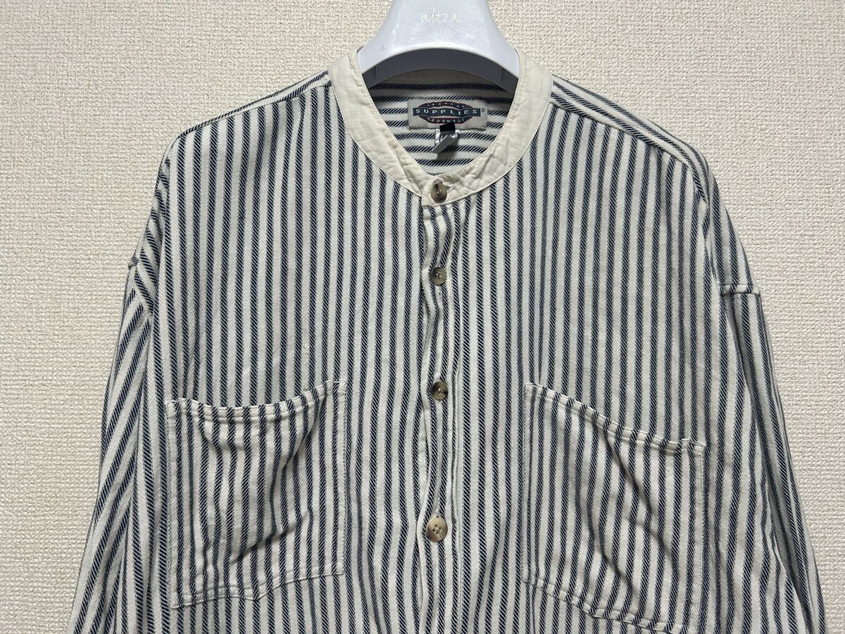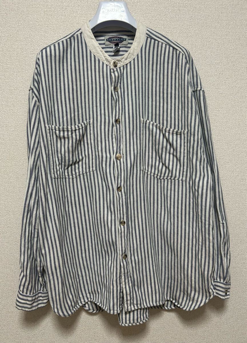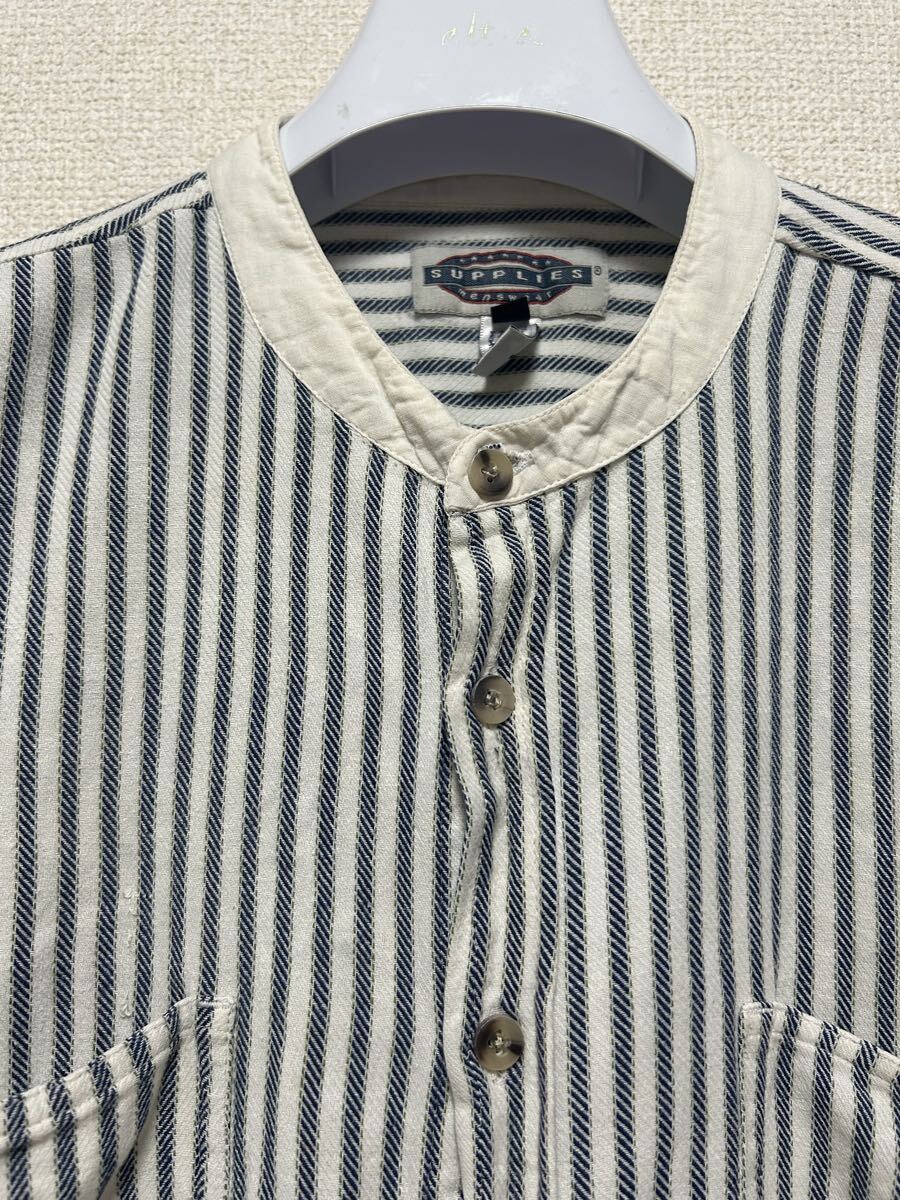 90's USAヴィンテージ ノーカラー ストライプ柄長袖シャツ